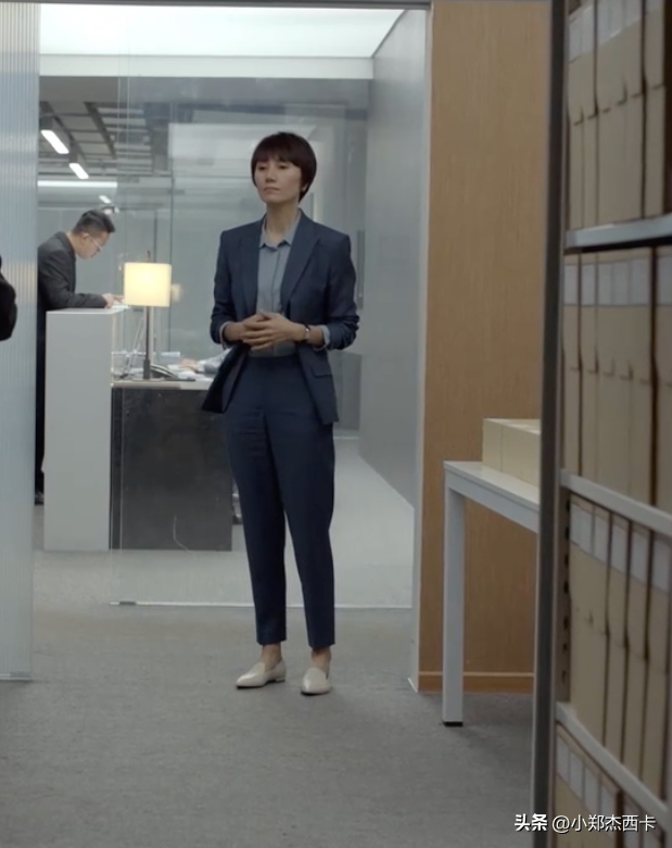 令老板的西装大部分也是直身中性风的,搭配西裤和高跟鞋。