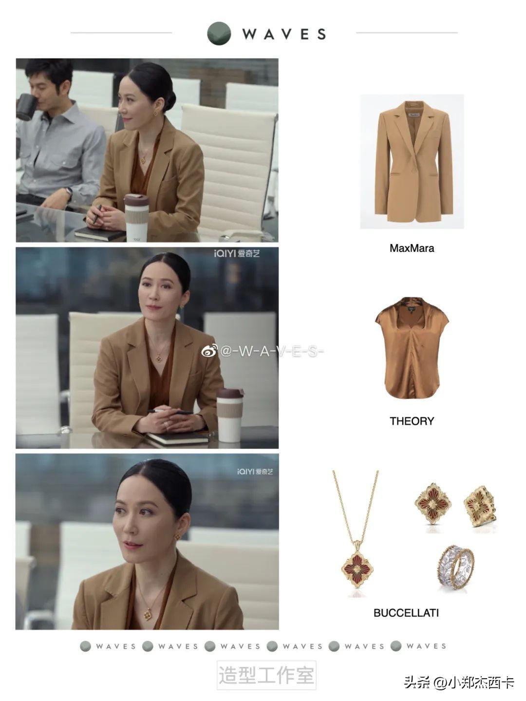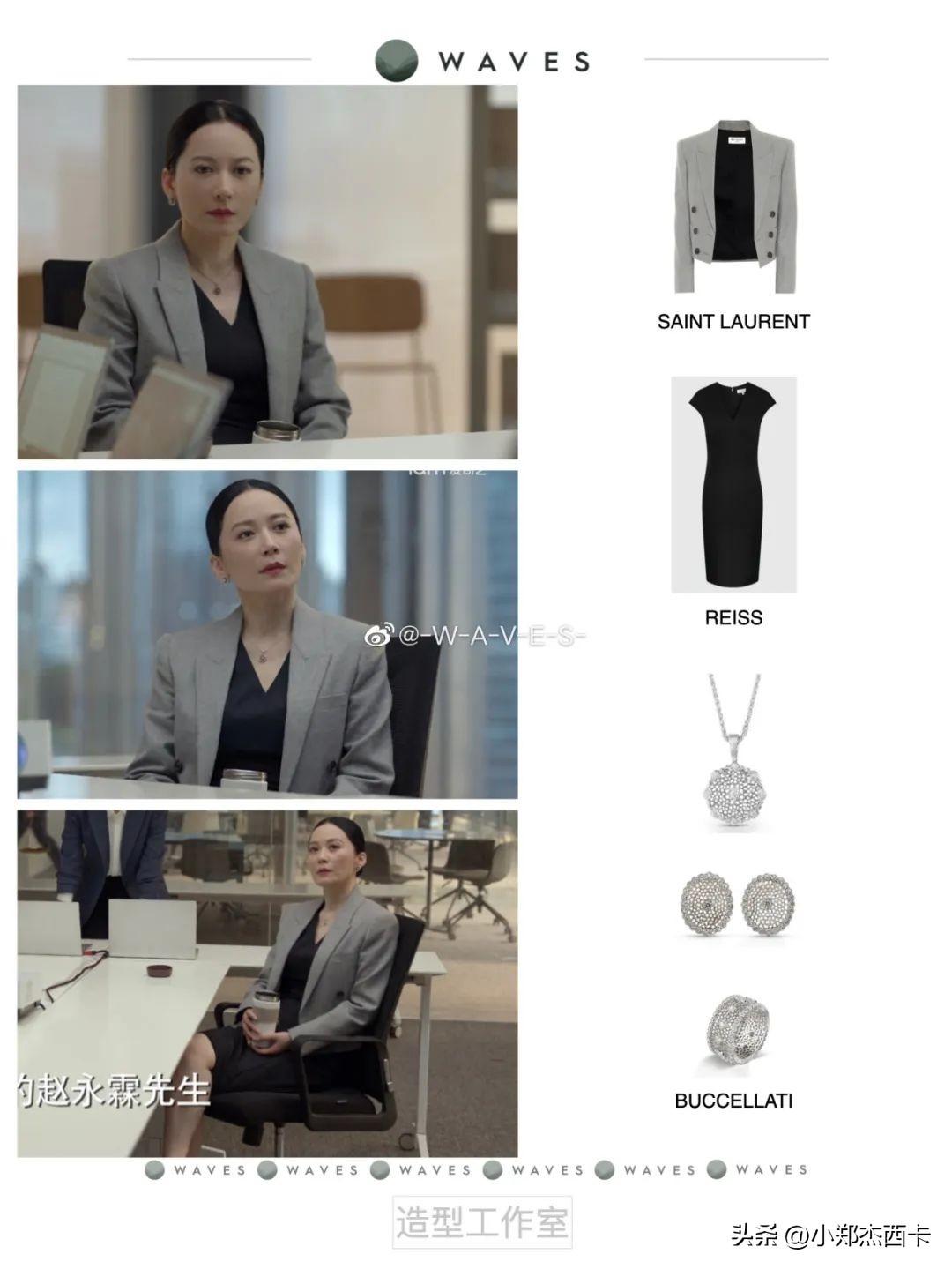 而令老板穿的多为 Max Mara、Saint Laurent,戴的是珠宝品牌Buccellati,这一点造型师很用心了。