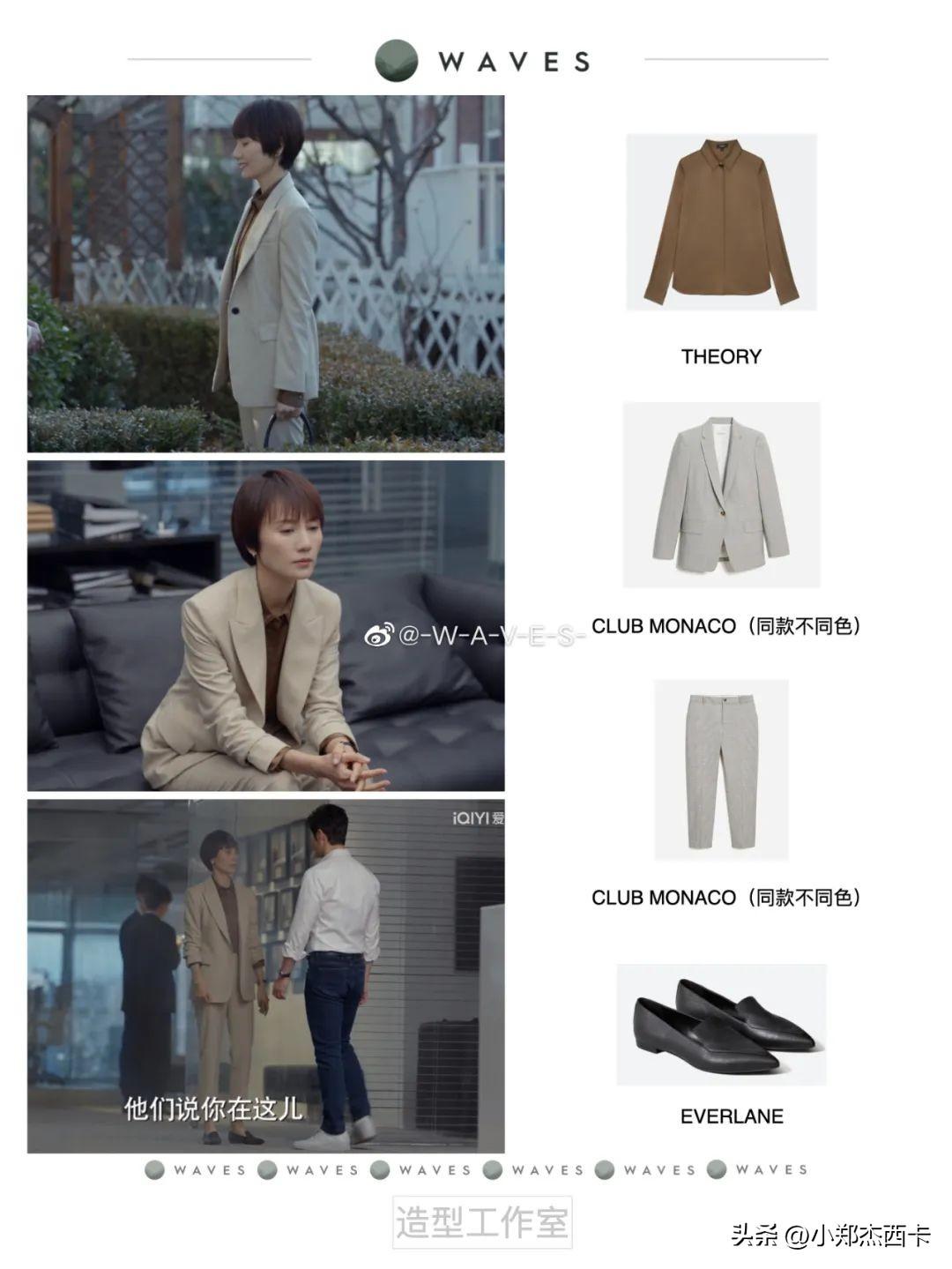 从目前几集来看,袁泉穿 Everlane、Theory、Club Monaco,除了手表,暂时没有珠宝;