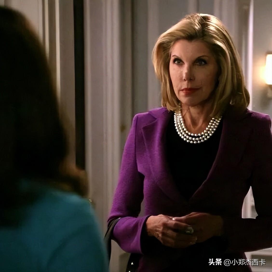 律所合伙人 Diane 身上的「女性化元素」更加突出,毕竟律所合伙人还是以男性居多,所以 Diane 处处用衣服来强调自己是「在男人世界里打拼的女人」。