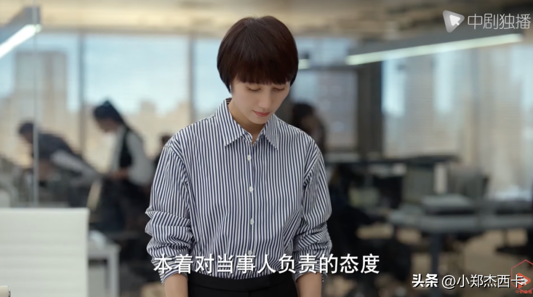 红色衬衣搭配黑色长裤,一整个灰蒙蒙的办公室里,一看就知道她才是当家作主的那一个。