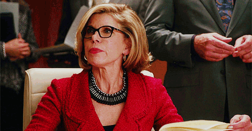 比如 Alicia 经常穿正红色,超有自信。注意,她这套西装的设计依然有女性化的收腰细节,穿上这套衣服,真又飒又美又性感。
