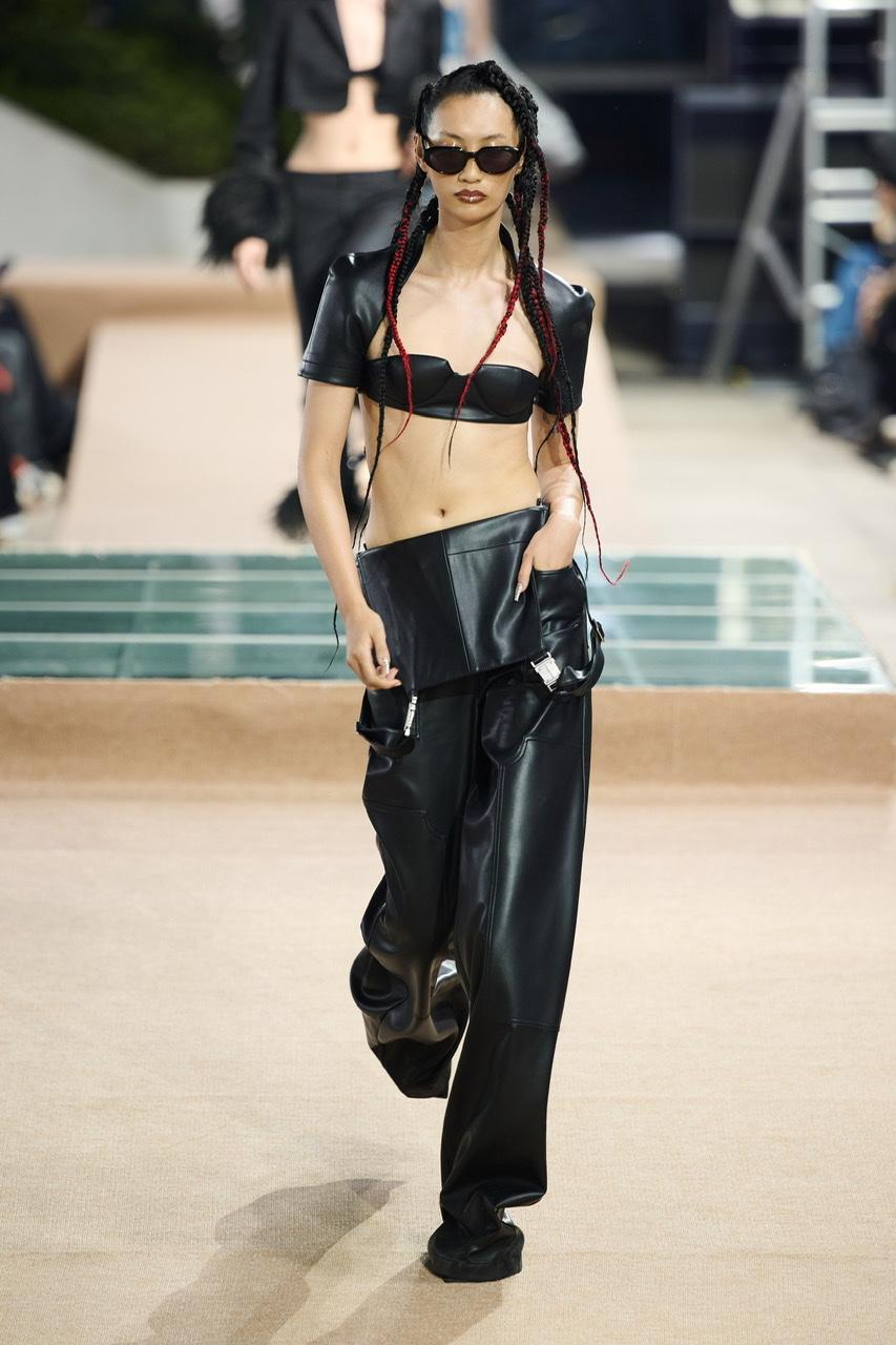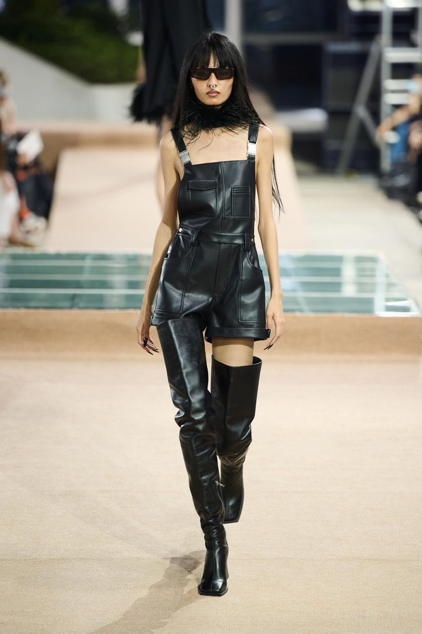 而Louis Shengtao Chen常用的圆锥设计元素出现在第三部分“矛盾”之中,例如圆锥后跟,波点圆锥包,以及搭配皮革和铆钉元素的圆锥礼裙,进一步加强视觉上的冲撞感。