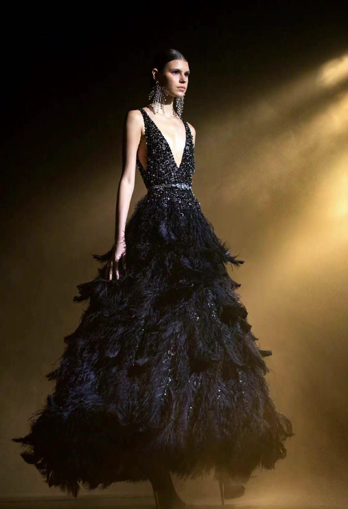 通过刚刚发布的视频可以看到,Elie Saab本季高定秀充满戏剧化的梦幻色彩。主题为“梦中的剧院”,充满了华丽和神秘感,设计师将羽毛、刺绣、亮片、雪纺、丝绸等元素运用到了。Elie Saab的高定服装向来以奢华的仙女感闻名,受到明星、名媛的青睐,新款晚装在娱乐圈更是一件难求。去年8月,贝鲁特港口区发生爆炸之后,该品牌工作室遭受严重损失。与往季相比,本季设计在色彩和风格上减少了几分飘逸,增加了厚重和优雅感,大量运用了黑色、灰色、深蓝色,轮廓比以往更为夸张,增加了女性的力量感。此前,Elie Saab发布了2021早秋成衣系列,从中可见端倪,该系列以1970年代为灵感,包括黑色的格纹西装、连身裤等,充满神秘魅力。