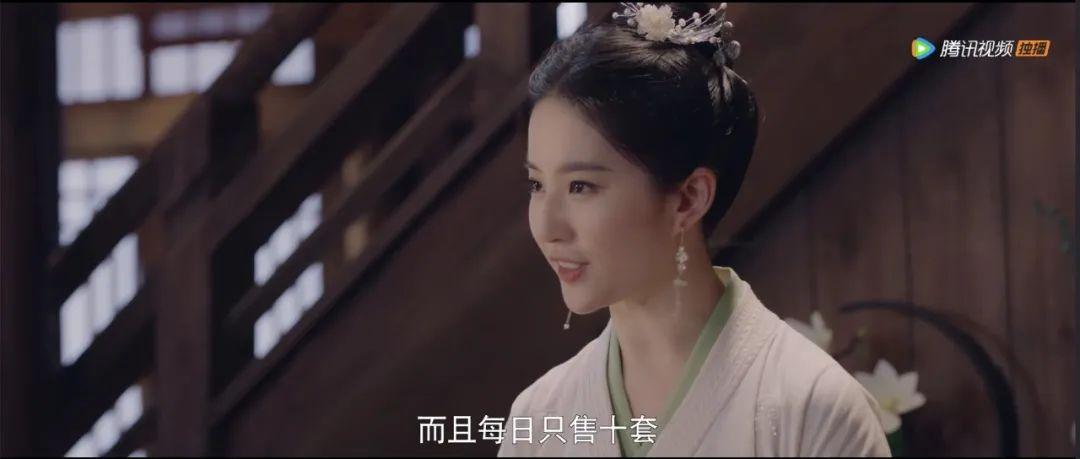 日常妆容清淡,虽不是青黛娥眉,但眉毛微微上挑,发髻也比较利落,带有一丝英气。开头当茶铺老板以及后面搞事业时,盼儿都选择了这种利落的妆发,还系了丝带,比较符合干练老板人设。