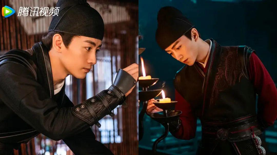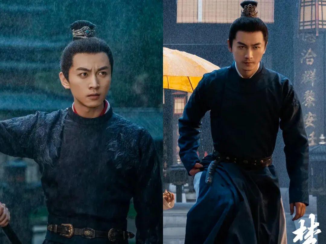 顾千帆的造型也蛮值得一说,在外办案时穿的便服材质讲究奢华,一看就是官宦富人使用的绫罗绸缎制成,肩袖还绣有暗纹,造型威风,彰显着武将气概。