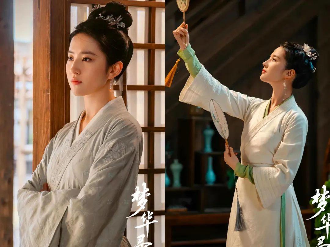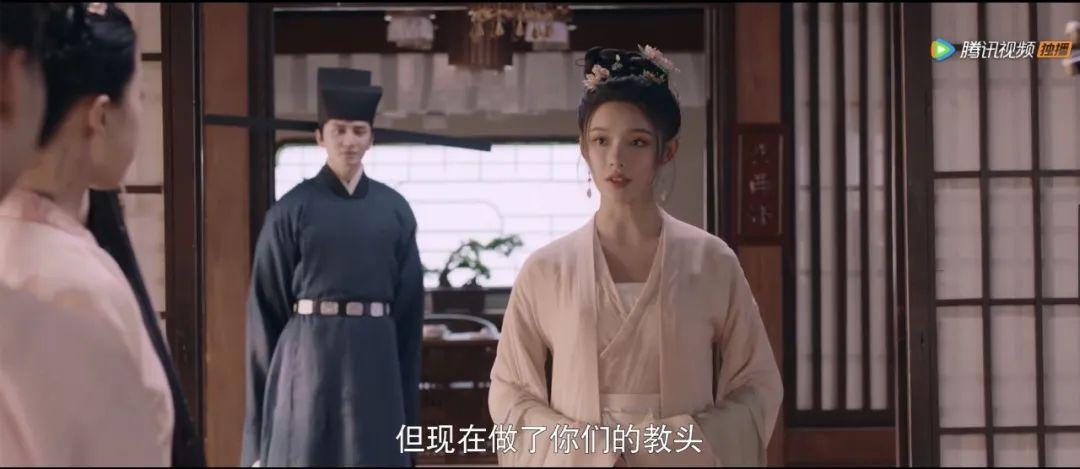 开始搞事业后,盼儿的穿衣风格逐渐转向“宋代职场风”。基本上是这种利落的交领裙装,乍一看略朴素,但无论是衣服上精致低调的刺绣,还是内衬、腰带与白裙的撞色搭配,都彰显着精致和讲究,和现代职场风穿衣套路也略有相似~
