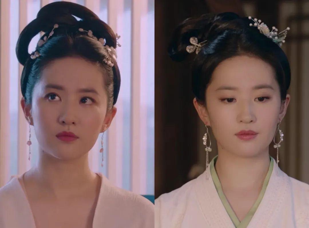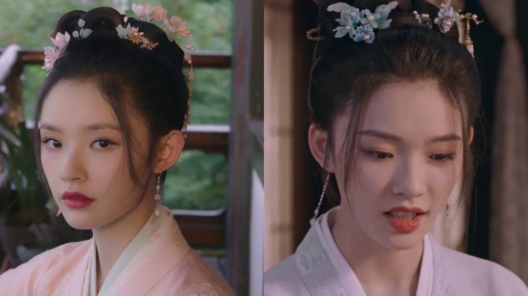 唯独在假扮花魁时,盼儿的妆容较浓,红唇和桃花妆感的腮红妩媚动人,复杂的发髻和发饰也透露着雍容华贵。