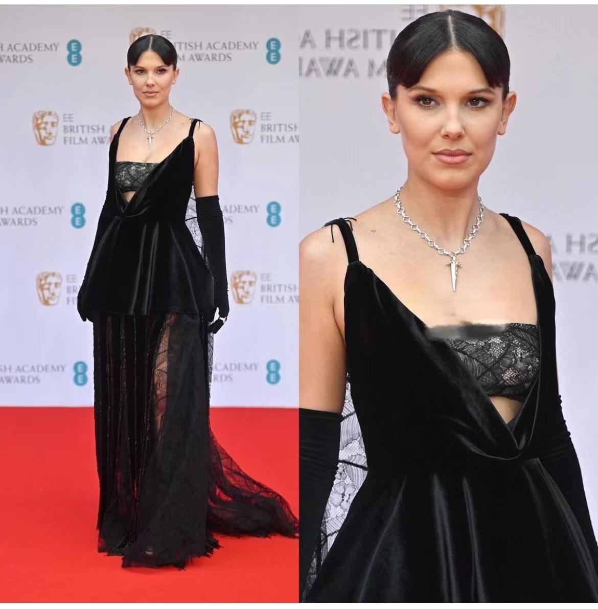 成衣看不懂,定制就更迷了。小11Millie bobby brown穿了一套LV的定制丝绒蕾丝礼服裙,这套礼服风格和小11不契合之外,设计也老气廉价,让人不敢相信这竟然是LV的裙子~