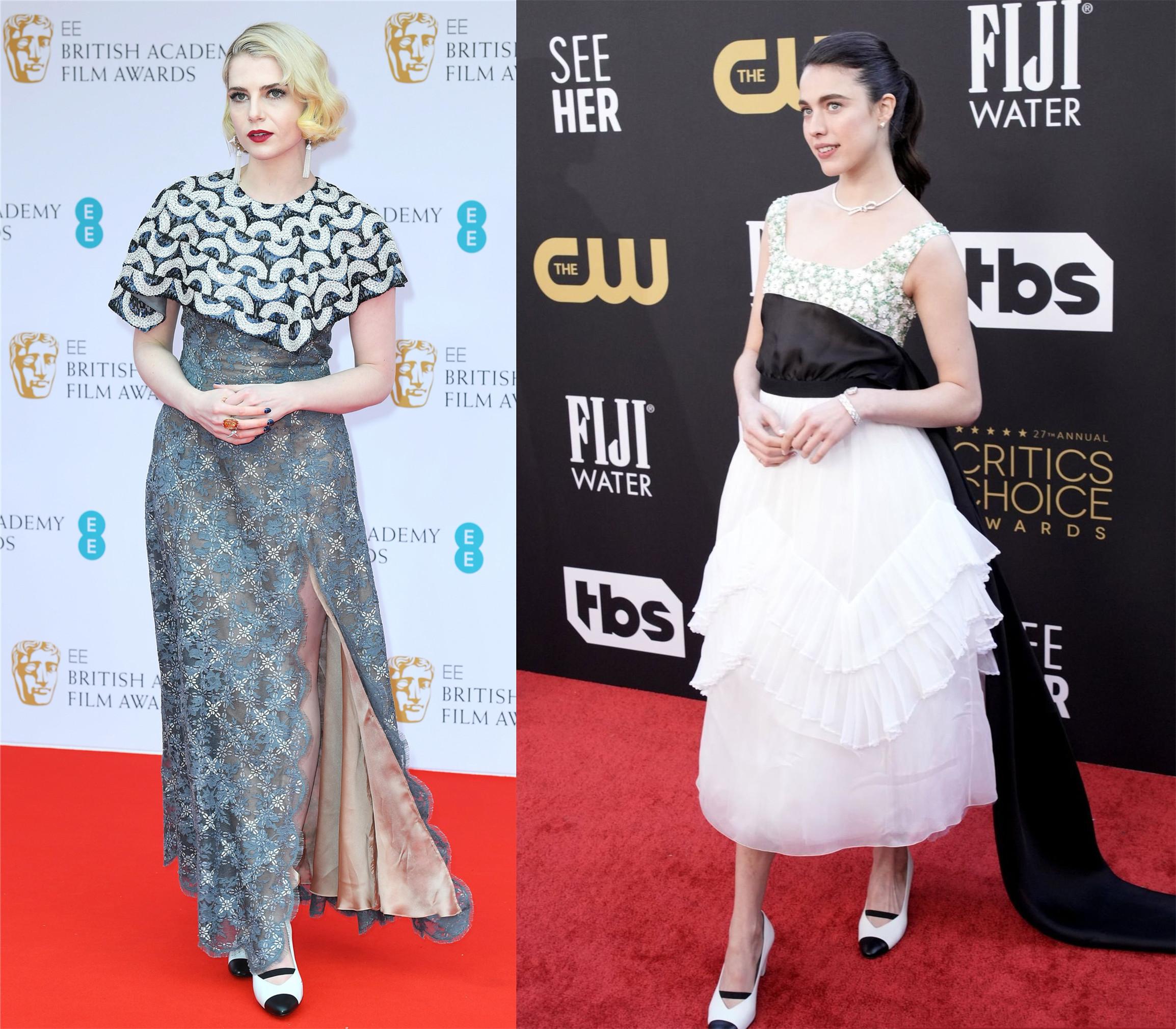 Margaret Qualley和 Lucy Boynton的这两套礼服都是来自香奈儿的高定,礼服本身也是不太好看,全靠两位美人的颜值妆发和好状态加分。