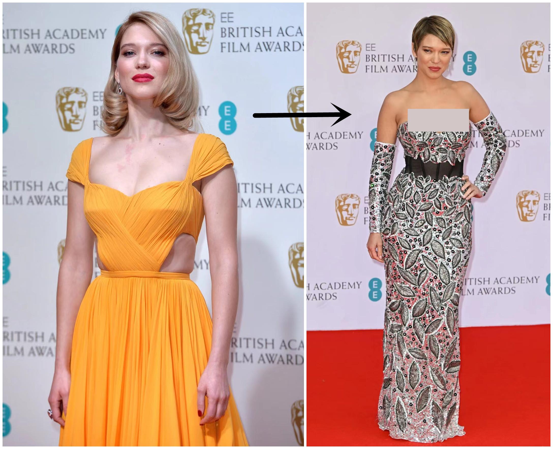 邦女郎Lea seydoux也是LV定制(右图),美女穿上这样的礼服也感到委屈。