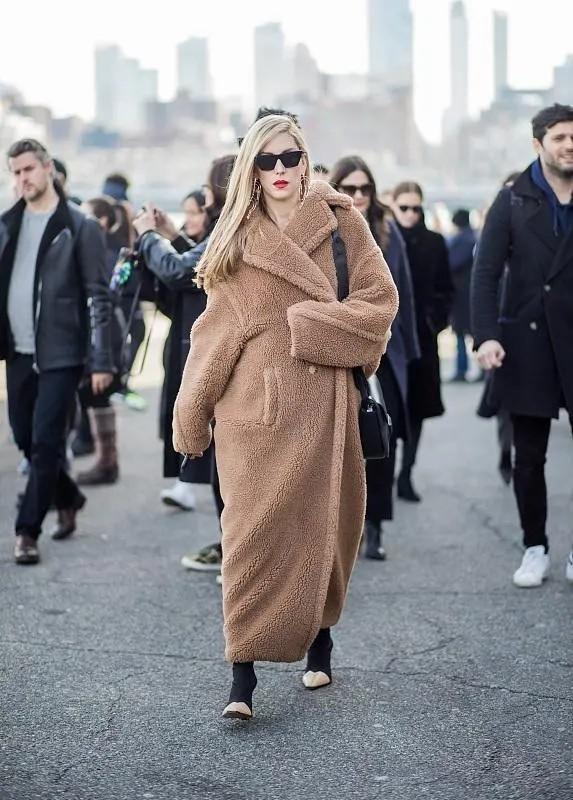 首先,第一款不能轻易尝试的大衣,就是厚重的毛绒大衣。比如上图这种羊羔毛的面料,看上去显得暖和,但是穿在身上,保暖性能却不见得有多好。因为这种面料通常考验的是密度,羊羔毛的密度要足够密集,才能够穿出足够的保暖度。