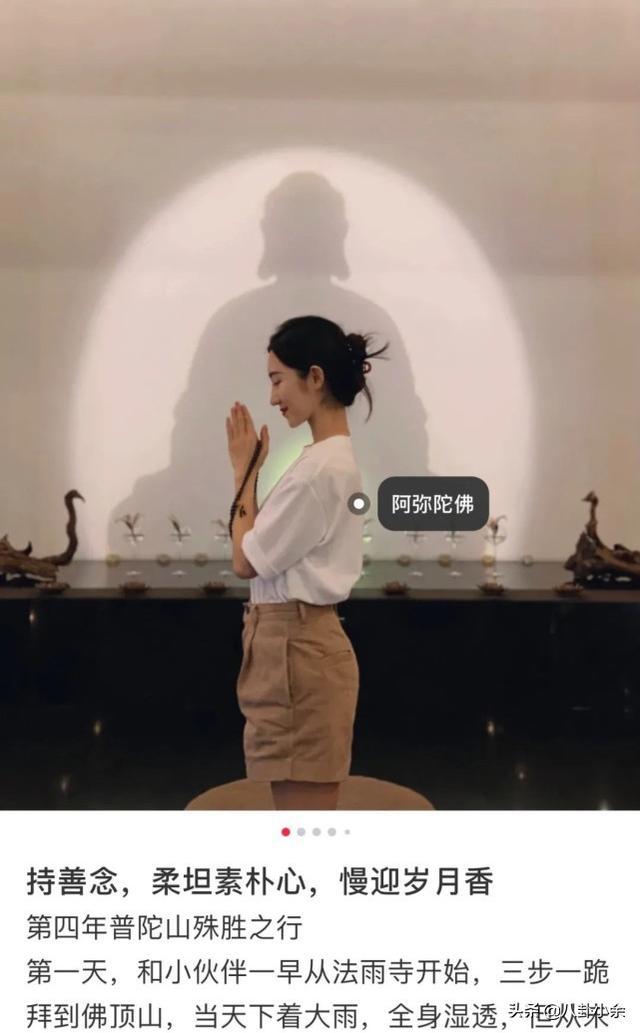 礼佛的她们,更是会在照片里,摆出各式各样的好看姿势,再配上一段儒雅随和,却又异常鸡汤的话语。