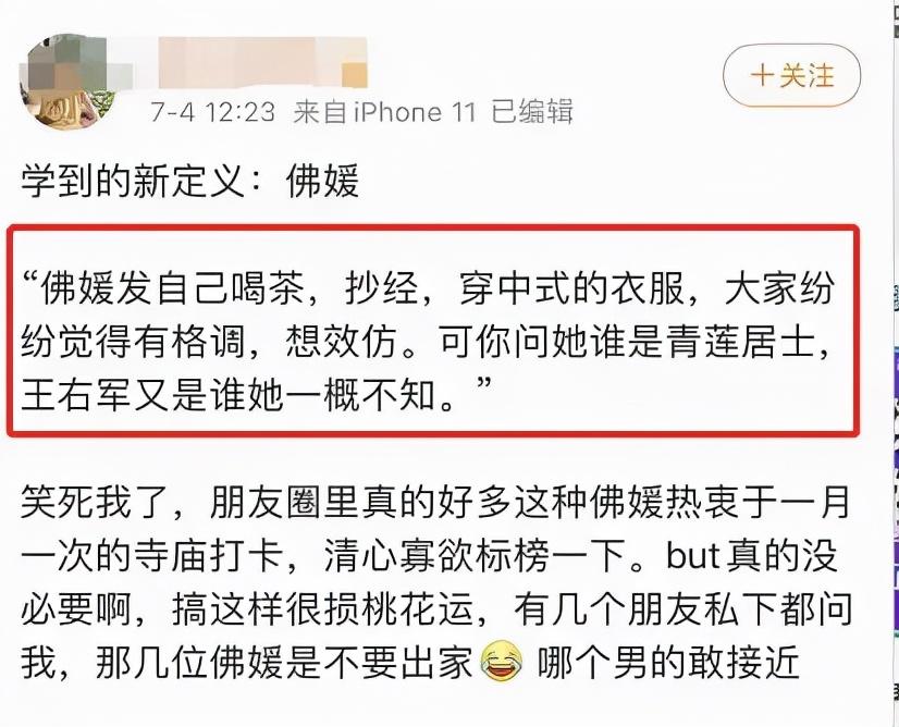 这些佛媛吧,也是和名媛大差不差,换汤不换药,营造的就是我是白富美的人设,赚的就是韭菜的辛苦钱。