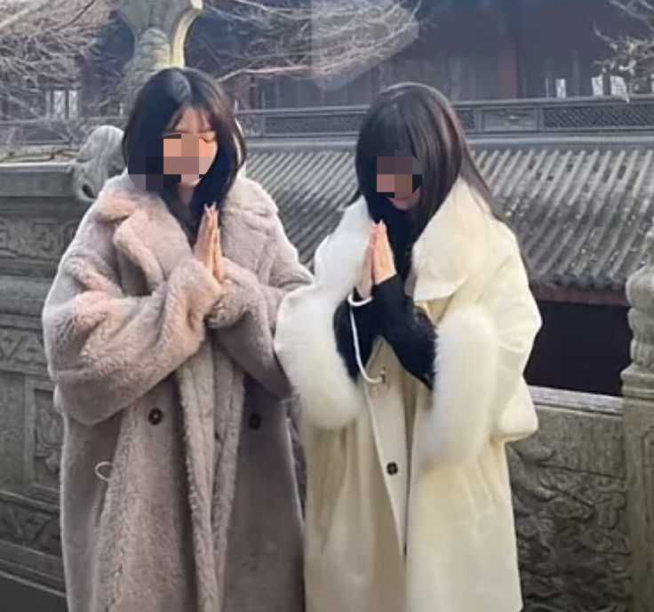 她们热衷一月一次的寺庙打卡拍照,清心寡欲的照片风格,咋一看是清冷优雅的佛系少女,