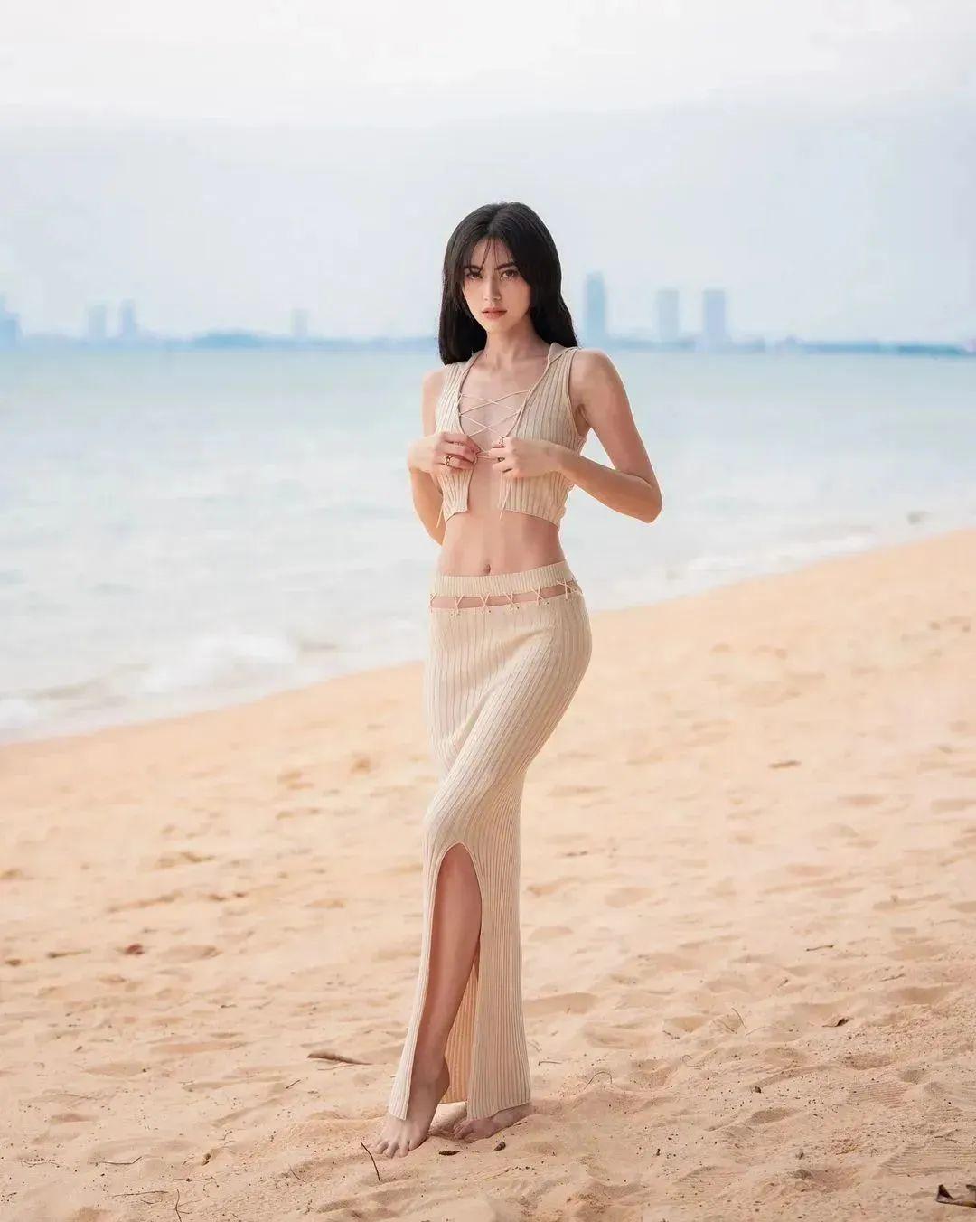 而Mai的基尼式服装相较其他泰星更有时尚感,大概是因为她单薄的身材为她赋予了一些性冷淡的意味。
