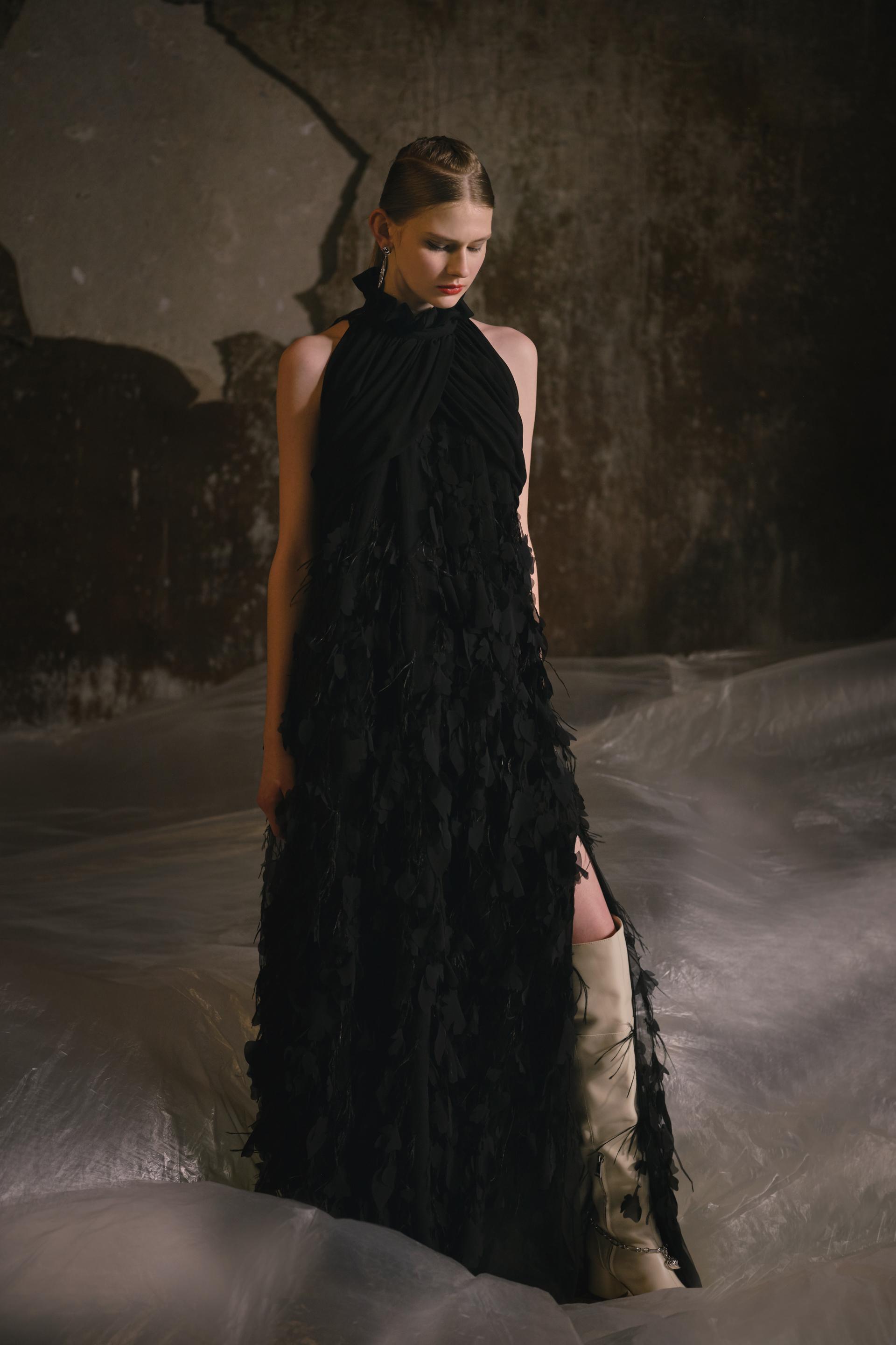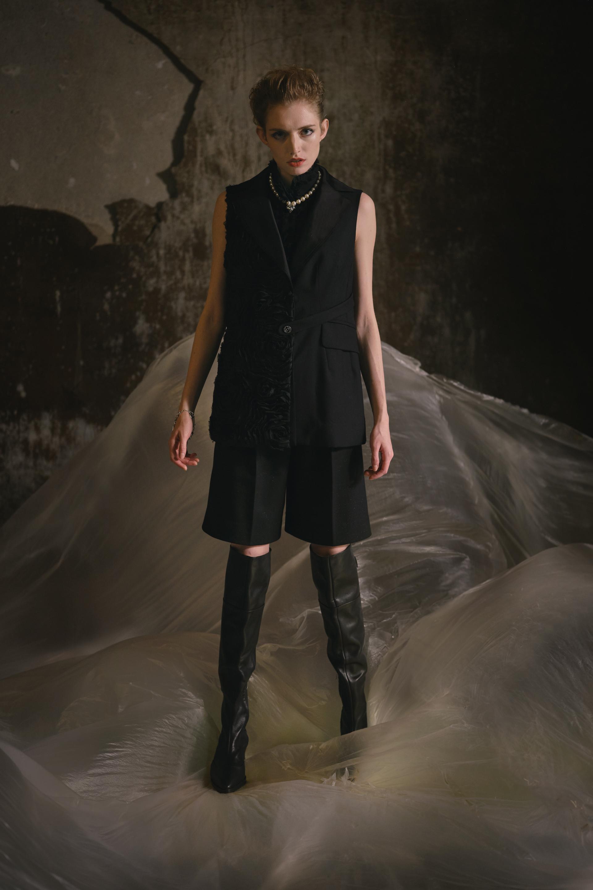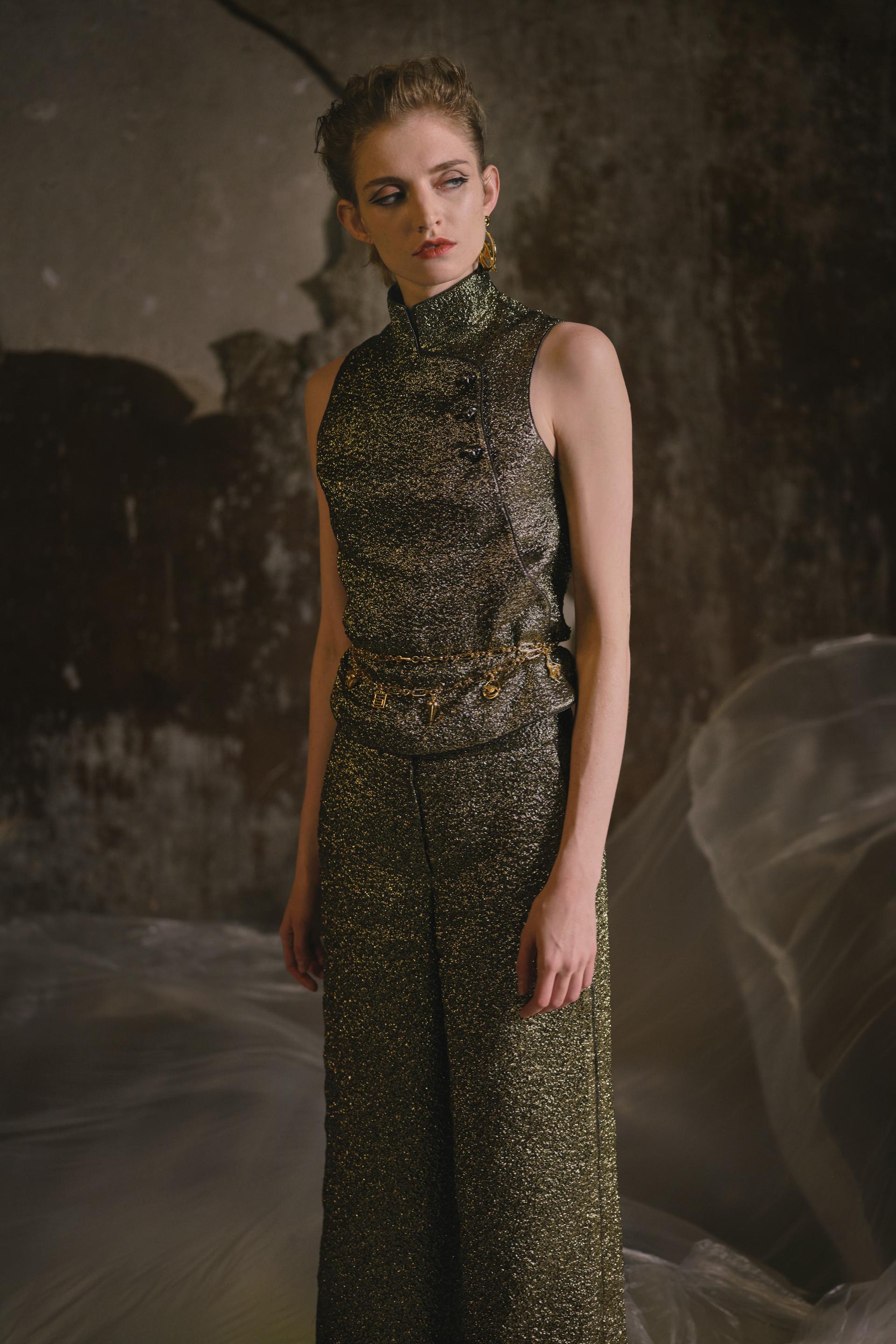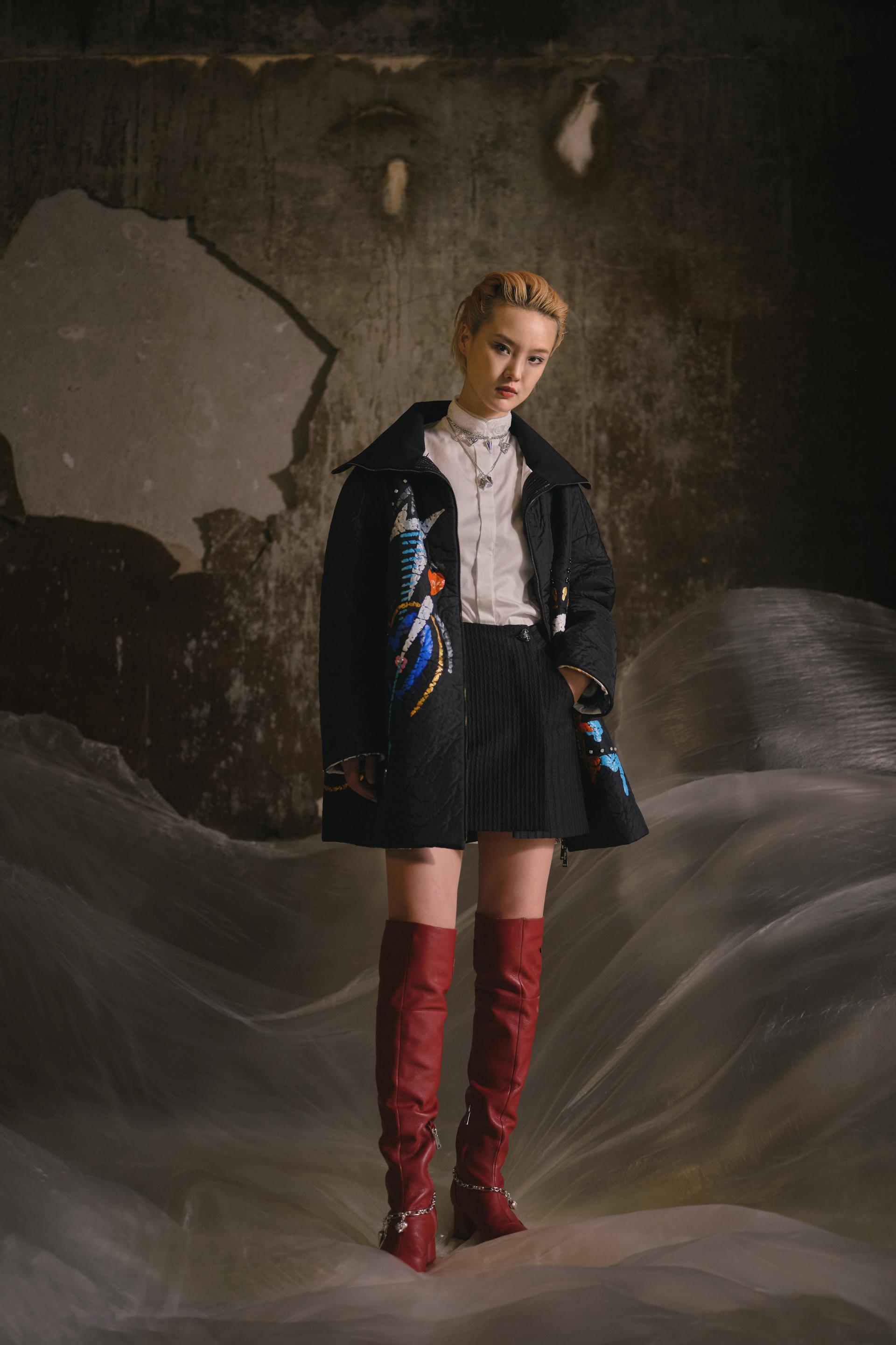 自2008年陈加入FHCM以来,由于冠状病毒疫情在的持续影响,我们已经两次通过在线时装秀参加巴黎时装周。这一季,我们在观音山水库的古纪念碑中进一步举办了现场时装秀,斑驳的墙壁和滴水的声音交织在一起,随着古纪念碑的重新开放,创造了一种穿越过去进入现在的神秘氛围。模特们沿着T台上的时间线大步或停顿,当这座古老的纪念碑与时尚交叉时,激发了人们对美丽东方工艺的记忆和热情,带领观众踏上了一段未知时间和空间的旅程,并在我们揭开陈2021 AW系列的帷幕时,探索冻结在时间里的时刻。