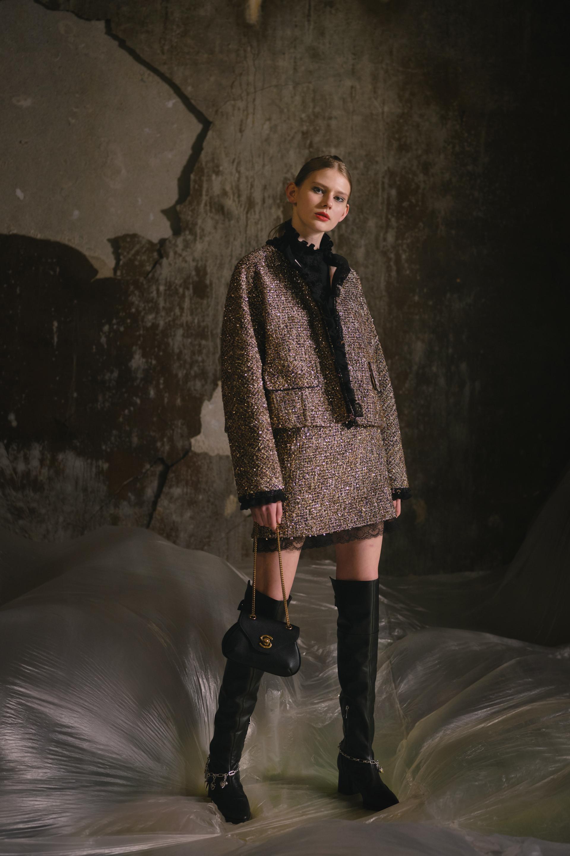 作为2021 AW系列的主题,创意总监陈专注于时间的概念。她陶醉于衣服的美丽,打开了一个时间门户,融合了70年代左右流行的权力着装理念和轮廓,并坚定地度过了艰难时期。