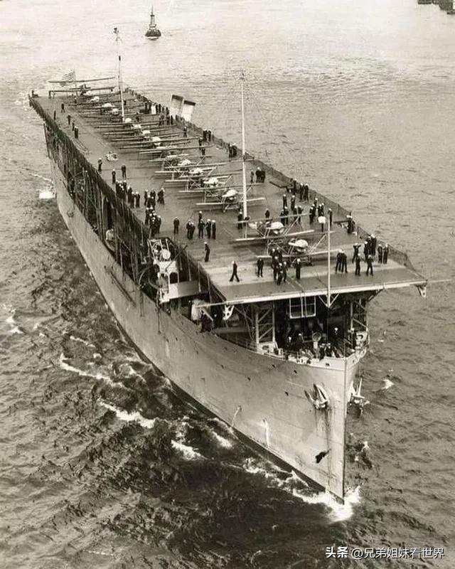 美国第一艘航空母舰。由煤炭货船改装而成,后期还继续拉煤炭。兰利号航空母舰。1928年。