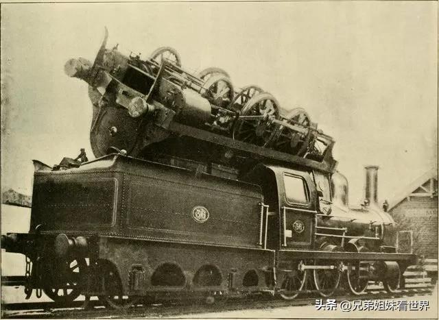 1888 年 12 月 22 日,挪威奥斯陆附近的 Strømmen 车站,发生锅炉爆炸后的余波,把一辆机车抛向空中,落在另一辆的车顶上。