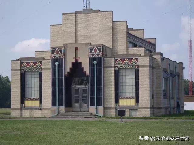 装饰艺术风格的 WJR 无线电发射机大楼,美国密歇根州底特律,1934 年。