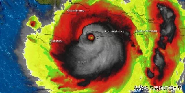 2016 年 10 月登陆海地的 4 级飓风马修的红外雷达图像。