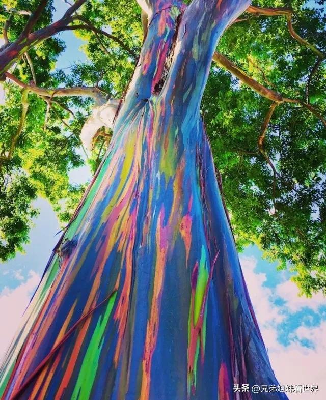 Eucalyptus deglupta,俗称彩虹桉树,是在新不列颠、新几内亚、塞兰、苏拉威西和棉兰老岛发现的桉树物种。随着外层树皮每年脱落,内部较绿的树皮显露出来,然后成熟并变成紫色、橙色和栗色。