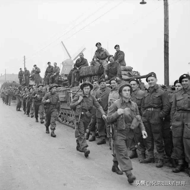 进攻荷兰蒂尔堡期间,第 6 近卫坦克旅的丘吉尔坦克和第 10 高地轻步兵团第 15(苏格兰)师的部队。1944 年 10 月 28 日。