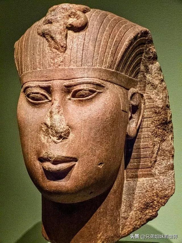 法老阿玛西斯二世的头像,由红色石英岩制成。阿玛西斯二世是波斯征服前埃及后一位伟大的统治者。古希腊历史学家希罗多德说,在他正确的管理下,埃及的财富达到了一个新的水平。