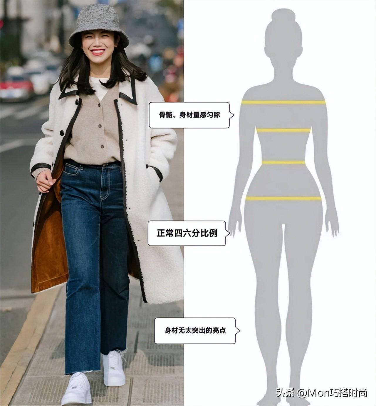 但也有一些姐妹明明身材找不到缺陷,但和腰细腿长的模特比起来,却每次都显过于平庸。这便是“中庸型身材”。