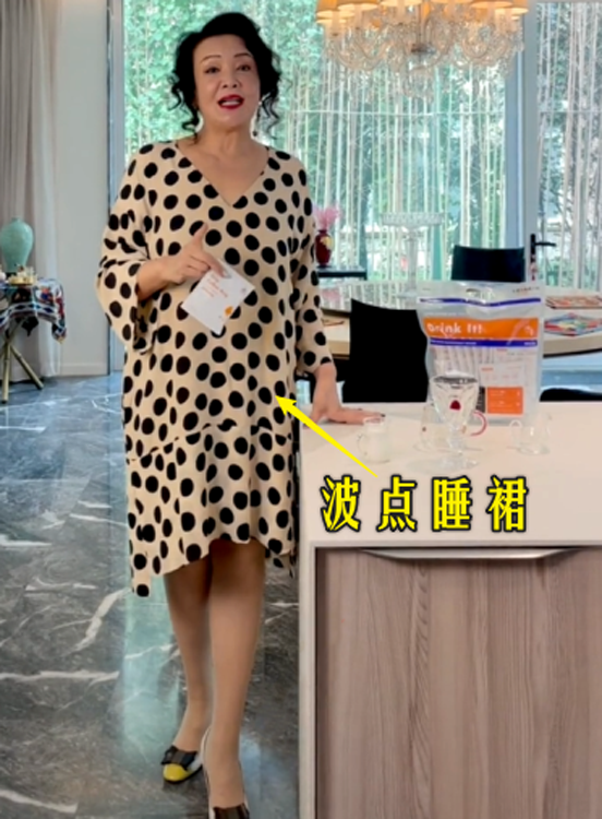 在网上,时常能够看到张兰在自家的豪宅中,穿着睡裙出镜。比如:波点睡裙。对于大波点元素来讲,它有开朗的一面,也有浪漫的一面。像黑白波点制作成的睡裙,它的色彩对比度,会让人觉得比较鲜明一些,看起来极具风情,也很有艺术气息。▼