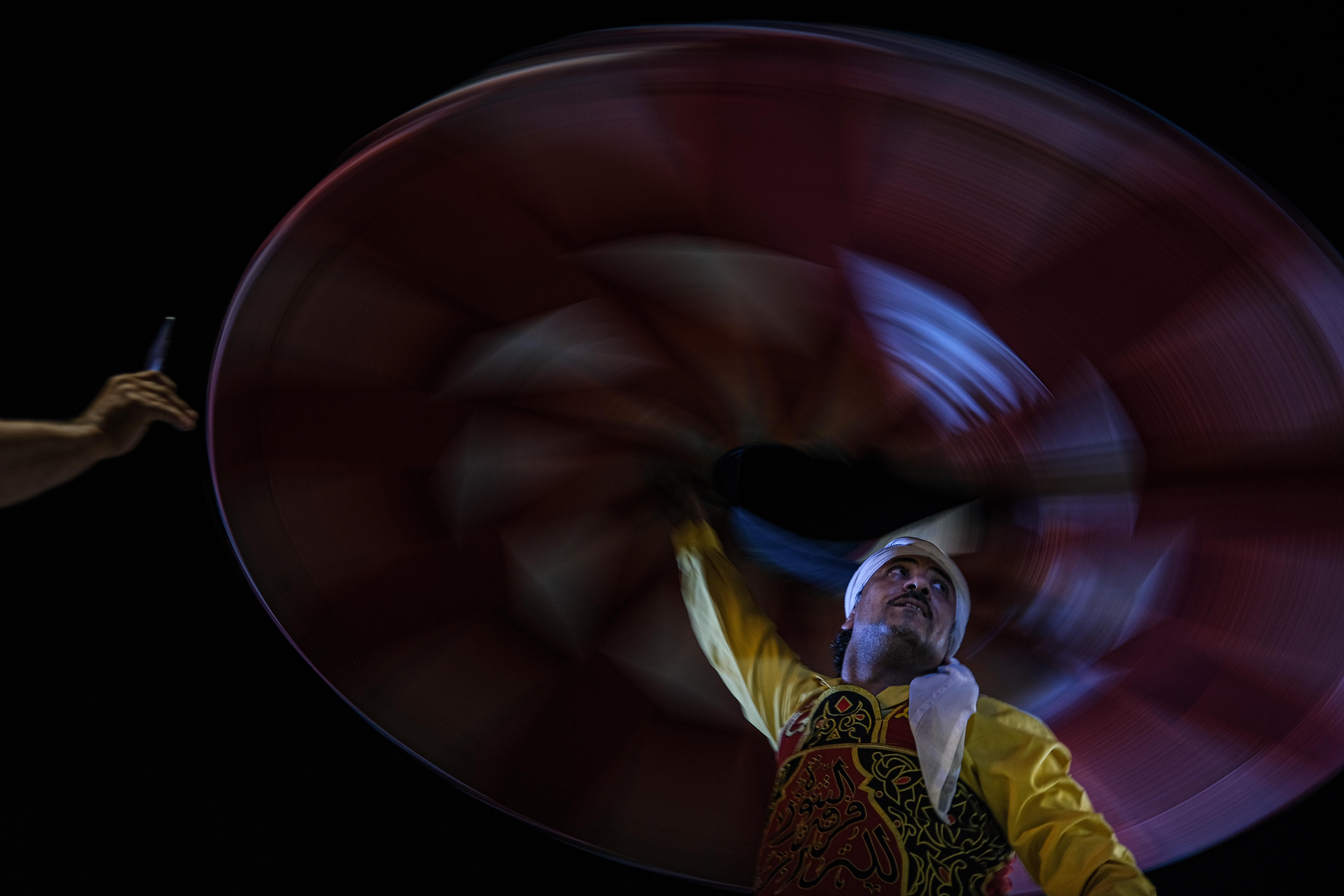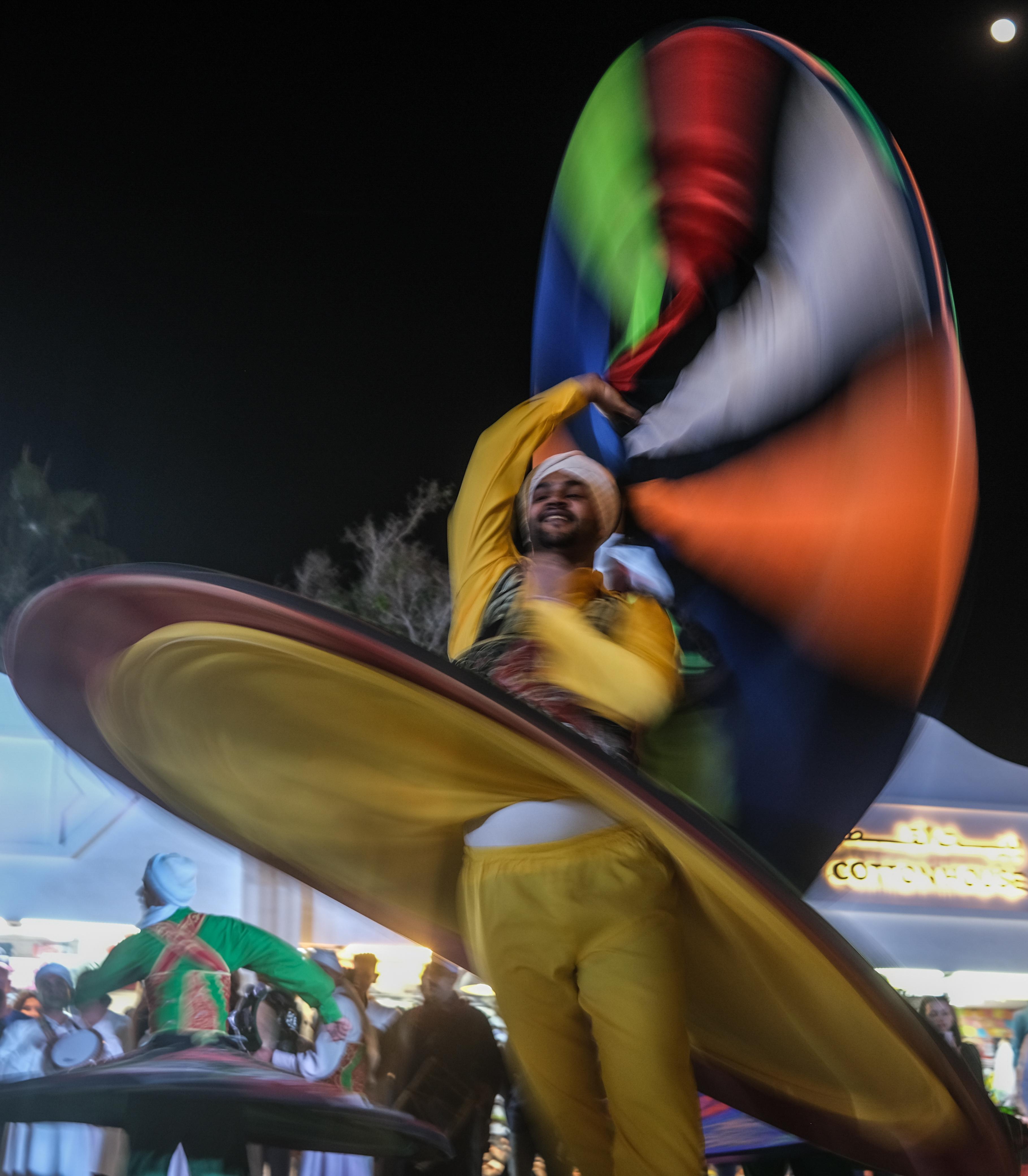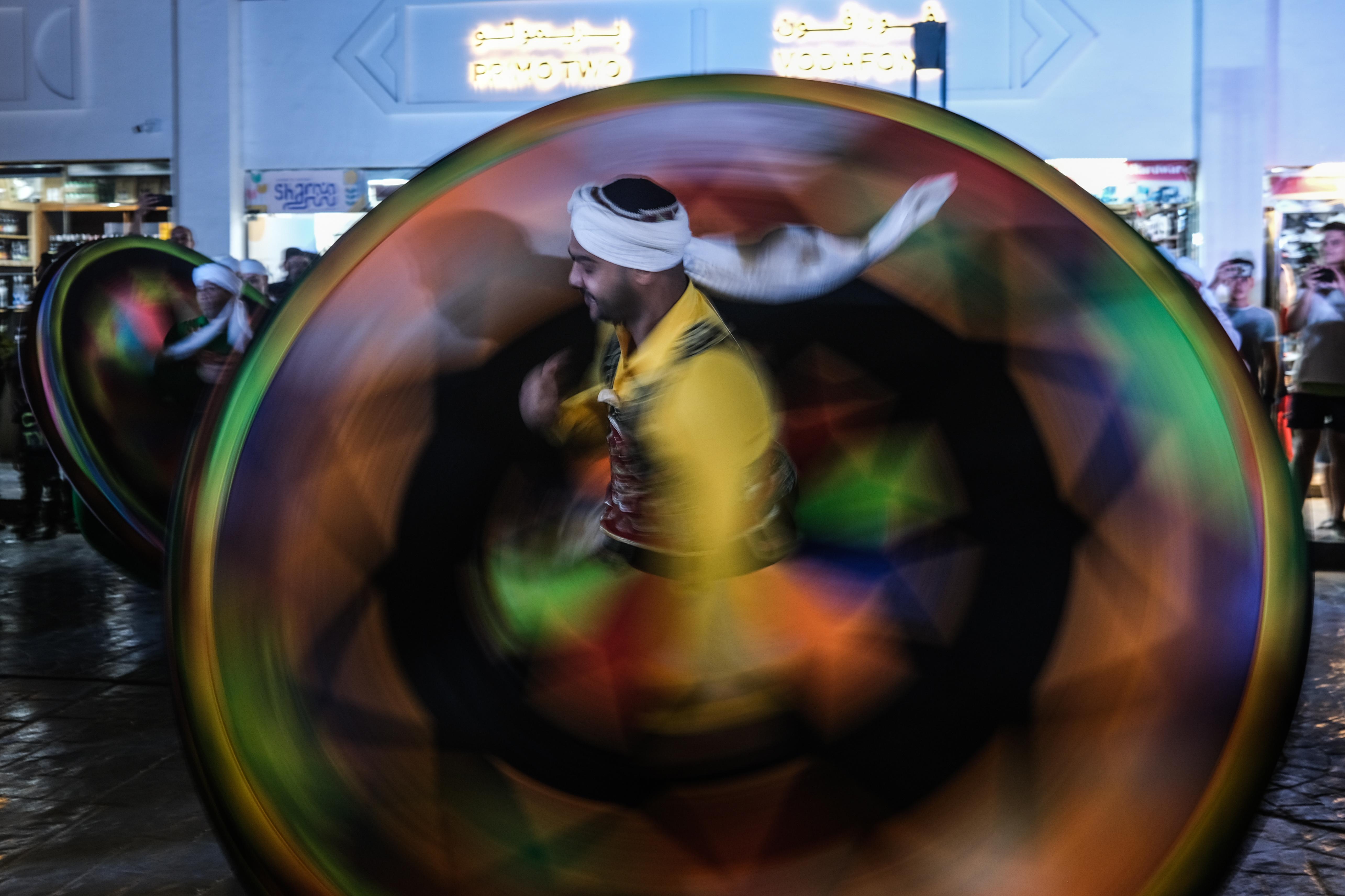 大裙舞是埃及民间传统舞蹈,舞者身着艳丽服装,随乐声旋转舞动,速度时快时慢,圆裙像波浪般翻滚。