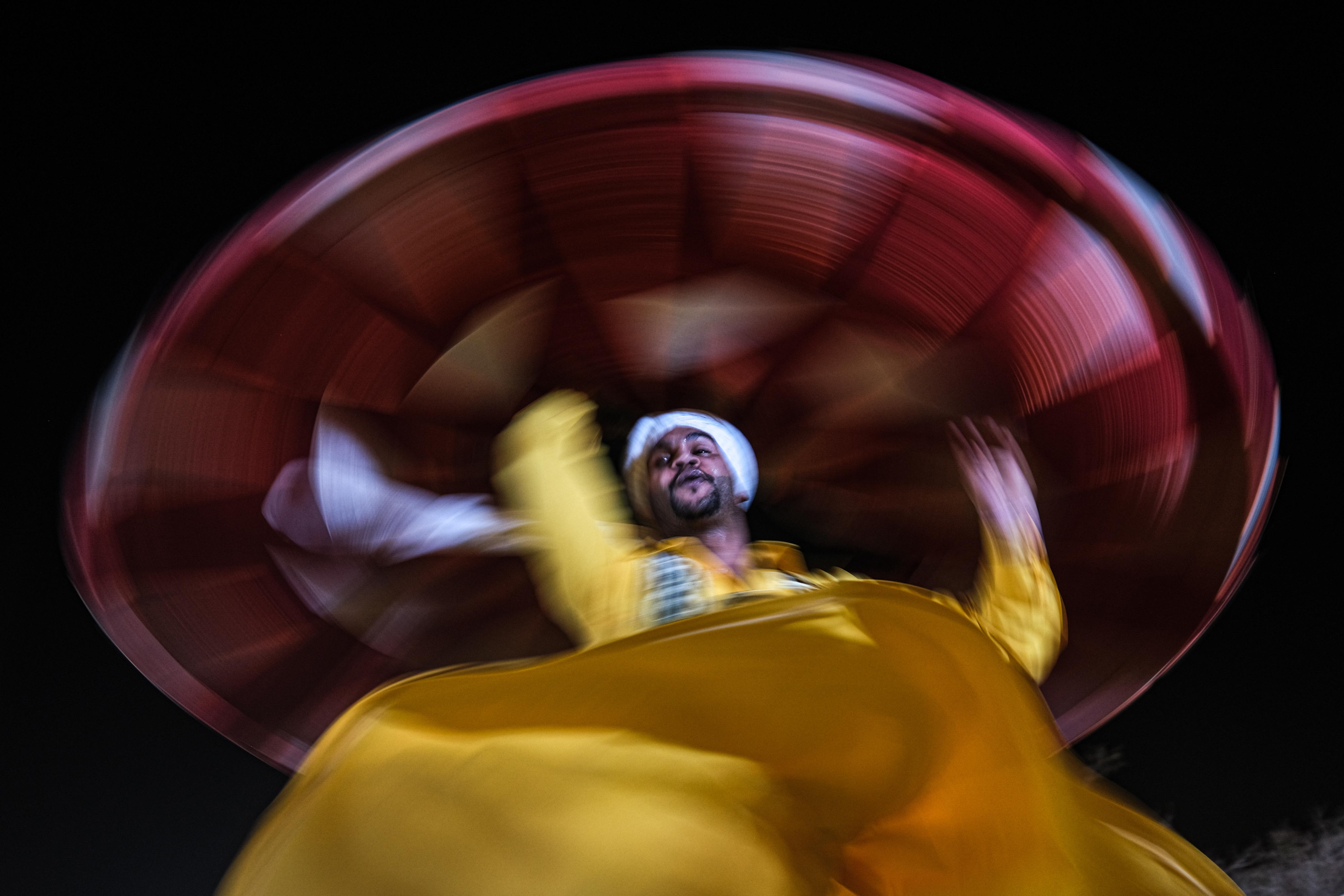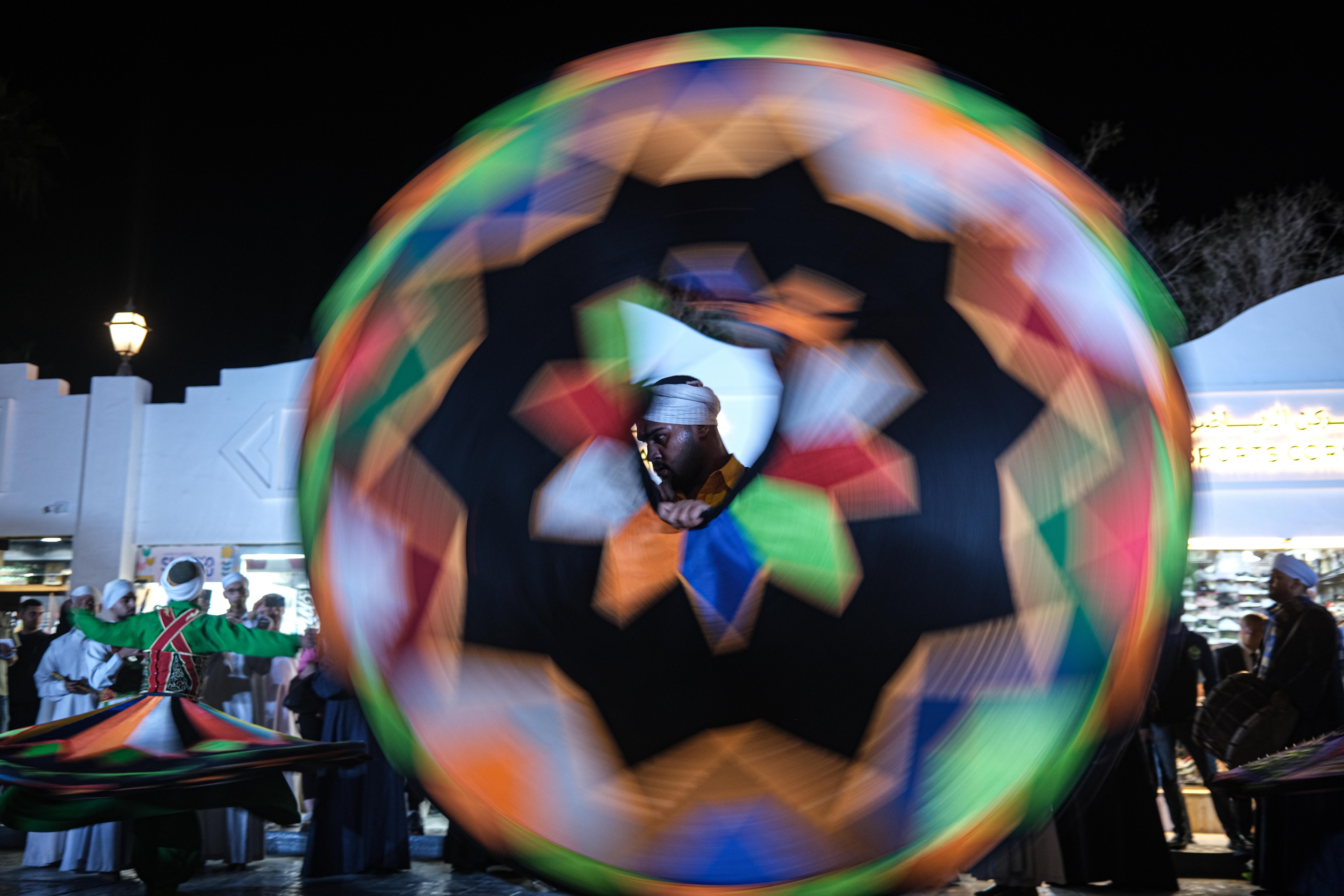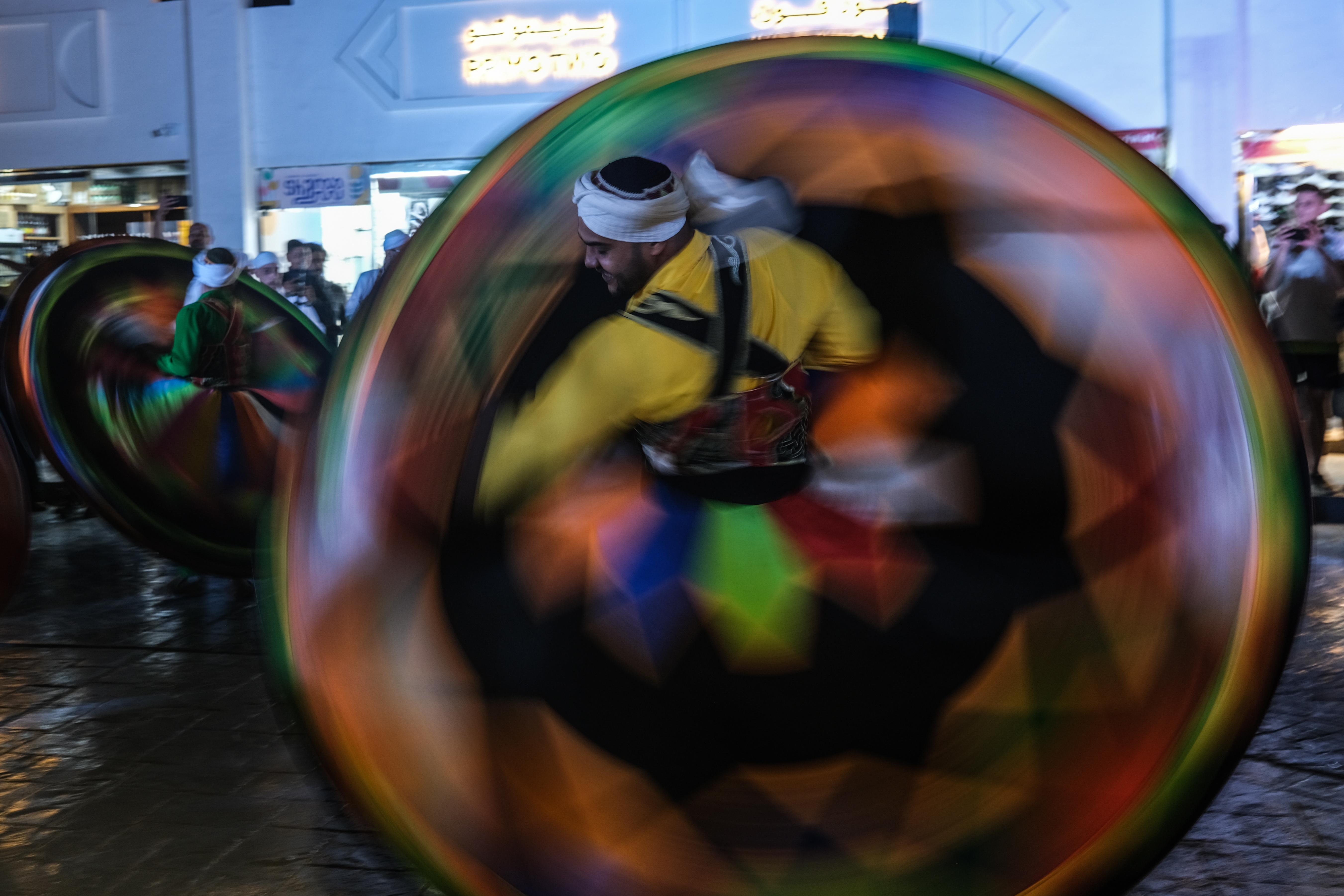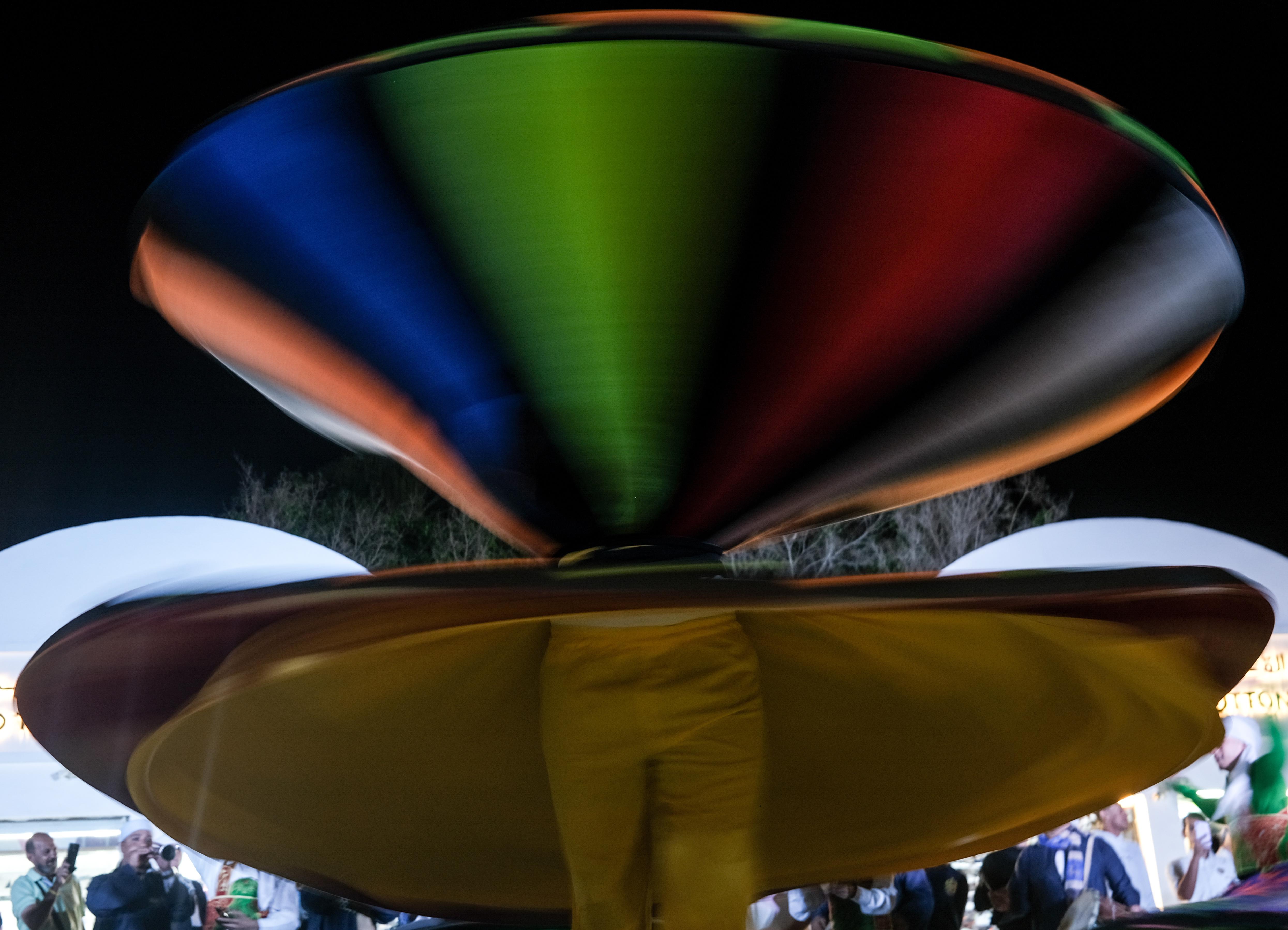 大裙舞是埃及民间传统舞蹈,舞者身着艳丽服装,随乐声旋转舞动,速度时快时慢,圆裙像波浪般翻滚。