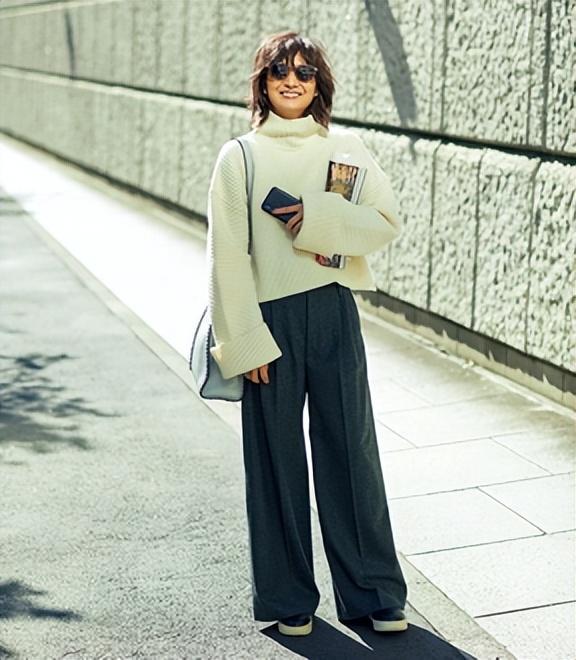 其实中年女人在挑选单品的时候,除了围绕简约有格调展开,有时也可以选择一些可爱的材质。毛衣这种软糯的面料既保暖又时髦,这件白色高领毛衣搭配阔腿裤,优雅气质呼之欲出。软糯感十足的毛衣,就算是贴身穿也不会出现扎肉的情况。