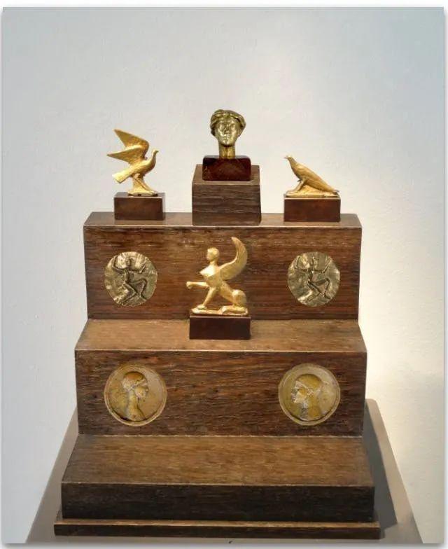 当后世梳理这位女设计师的文化遗产,总会为另一件来自贾科梅蒂的“礼物”所感动。雕塑家自愿当起首饰匠,设计、制造了一整套铜铸饰品。这套作品采用了历史悠久的“à l’écu”技艺,蕴含真挚的寓意:此技法起源于祖先将村庄内各家各户的铜币收集起来,重新融化、铸造成即将出嫁的女孩的嫁妆。一颗重生的纽扣便是一份美好的祝愿。