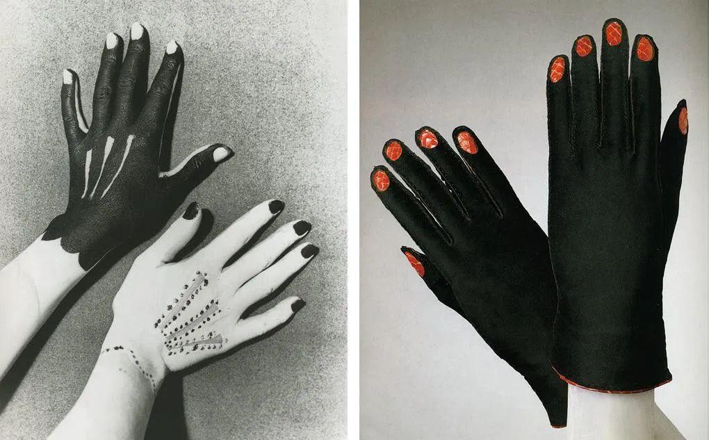 此外,相片定格了一双被这位立体主义大师涂满颜料的手,艺术家的灵感正来自于夏帕瑞丽设计的涂满红色指甲油的手套。“语”不惊人死不休,这一独创后来又演化成“长着金色爪牙”的手套,她的大胆前卫令时人刮目相看。