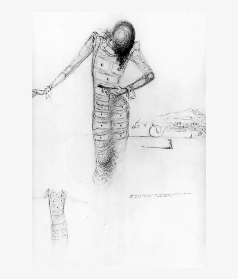 达利画作《三个年轻的超现实主义女性怀抱着管弦乐队的皮肤》中身着夏帕瑞丽礼服的女性形象