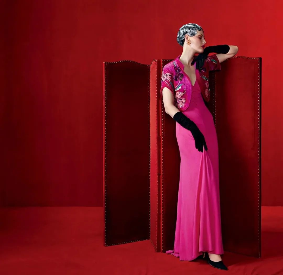 如果要用颜色来区分香奈儿和夏帕瑞丽,香奈儿是以黑色为代表的中性色,她出身寒微却坚韧不拔,其时装亦如设计师本人一般克制、优雅。而夏帕瑞丽的代表色必定是设计师本人爱的颜色——“惊艳粉”(shocking pink)。大胆且充满生命力,被她以“惊艳粉”装点的女性亦充满旺盛蓬勃的力量。