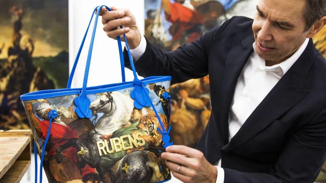 艺术家杰夫·昆斯与其联名的手提包合影