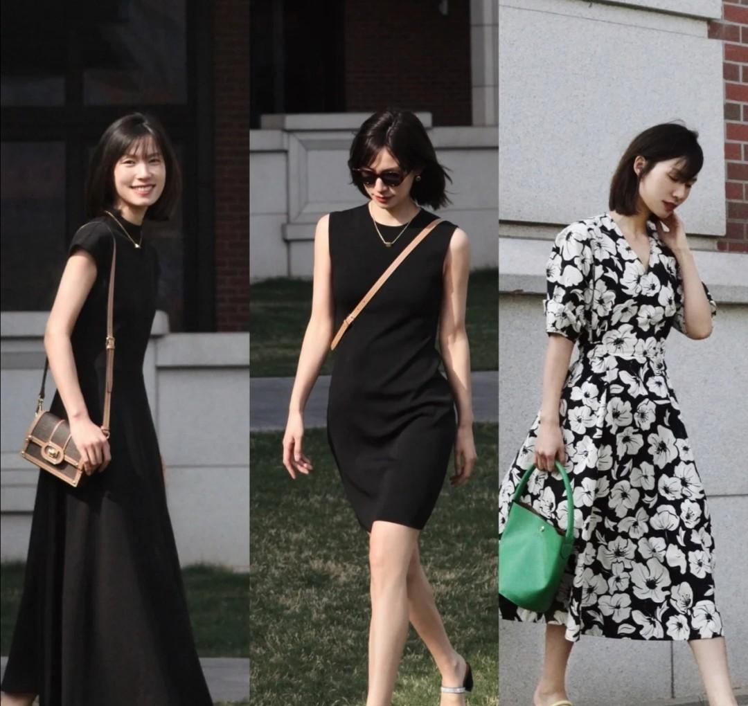 裁剪决定了这条裙装带来的显瘦果是否出众,颜色影响了裙子呈现的风格。如果想要塑造基础的造型,可以选用不同长度的黑色裙装,裸露的腿部面积多一点,展现出来的留白就更。上面这些服装百搭又好驾驭,普通人也能尝试。