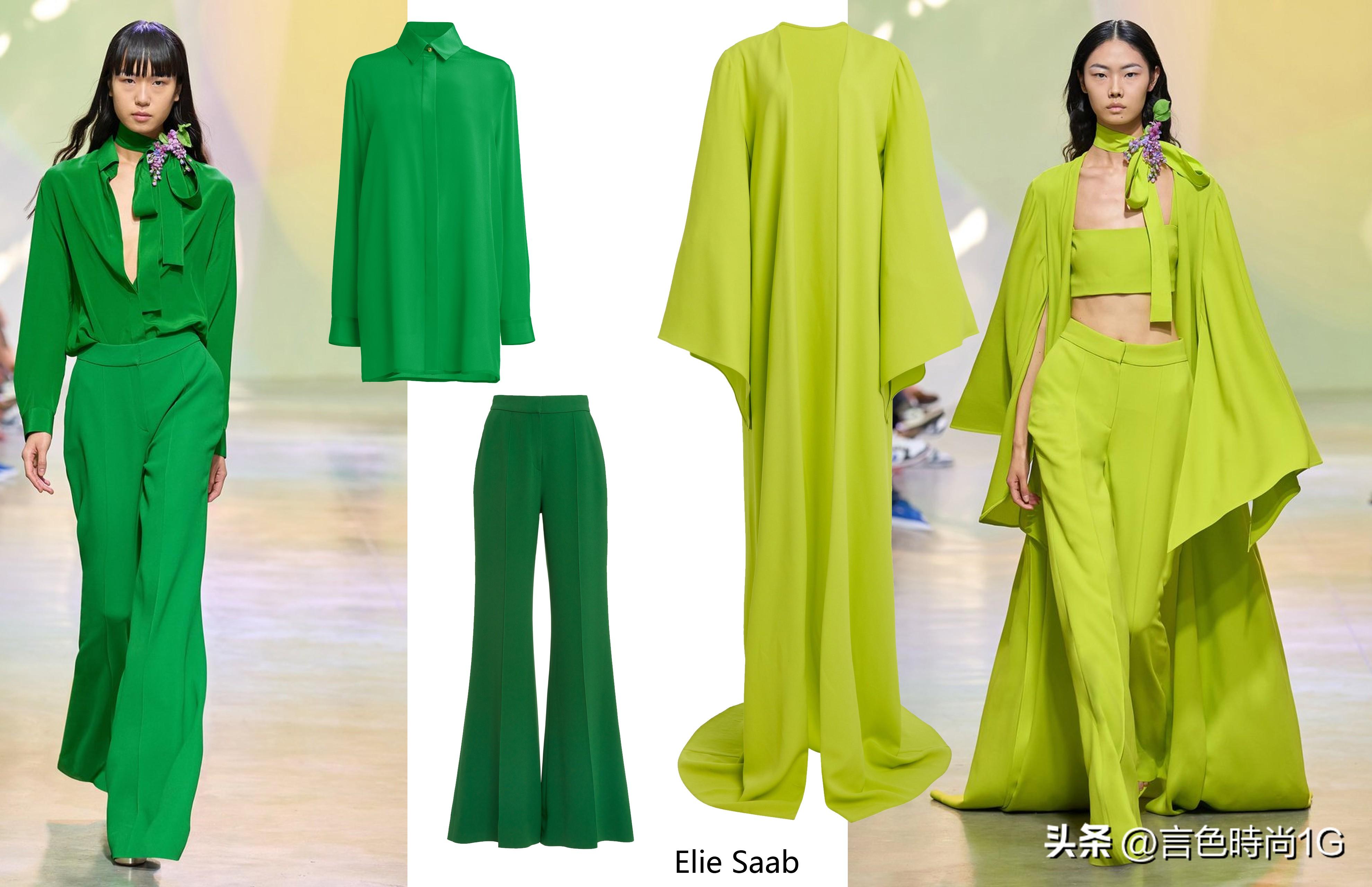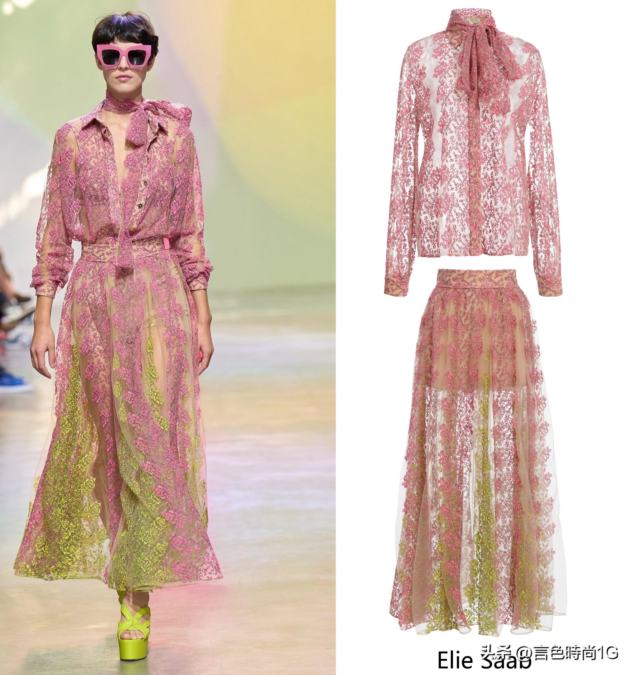 渐变色的运用则是在时装周中广受欢迎的十大流行色中的嫩桃粉与爱情鸟绿色中做了自然过渡。
