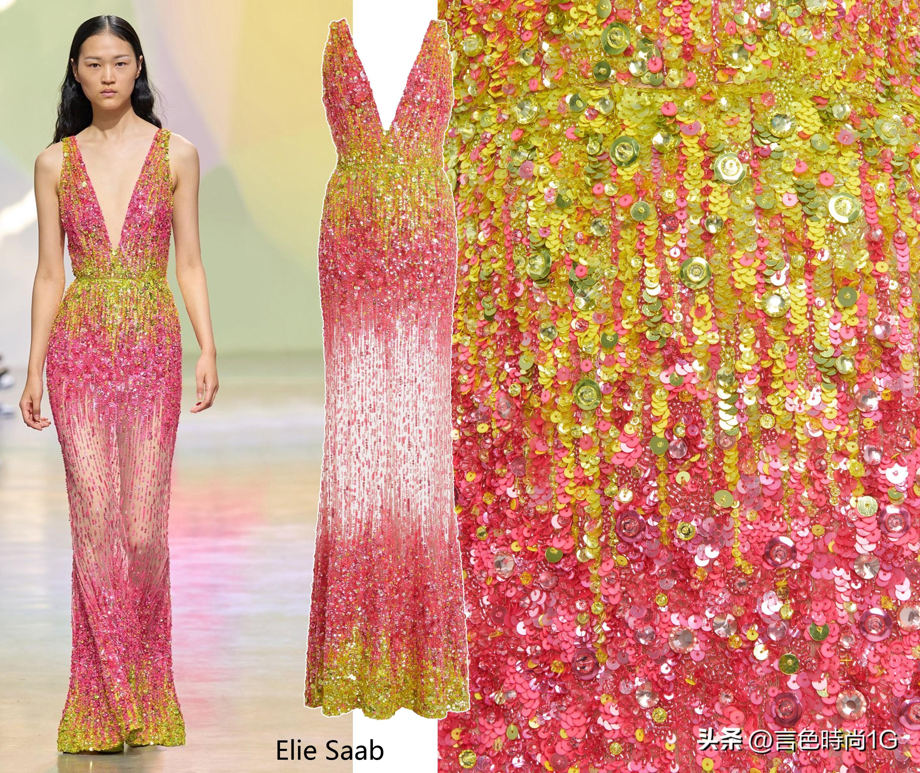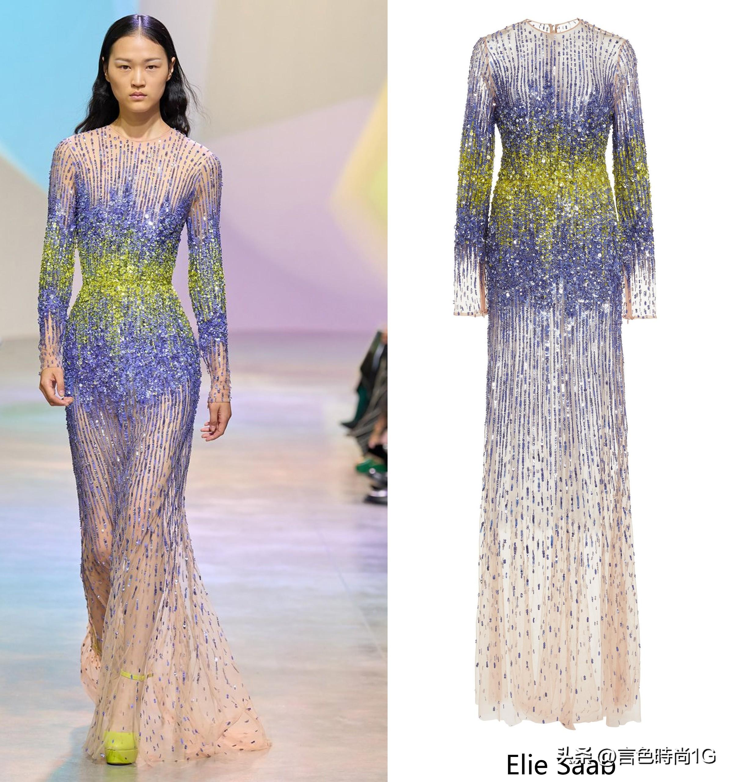 看看这无可挑剔的工艺细节,“真的不愧是你”,再一次把Elie Saab顶奢tittle打在公屏上,渐变色系珠绣与断层珠光的华丽细节至于一身,就冲这高贵的造价真的是令打工人所仰慕。