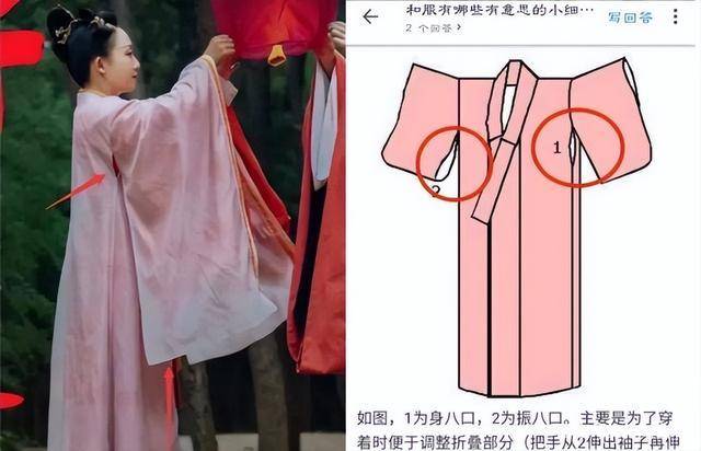 此外,辣目洋子的另一套戏服也被网友扒出,从侧面和后面看,咯吱窝的部位有两个的开口,而这个开口也是和服的典型特征之一,叫作“身八口”。在和服出现的初期,身八口是为了方便散热和整理衣服所开的,一般只有女性和服上才有这个东西。而男主角李宏毅所穿青色戏服,上面日本的樱花纹和菊花纹也清晰可见。
