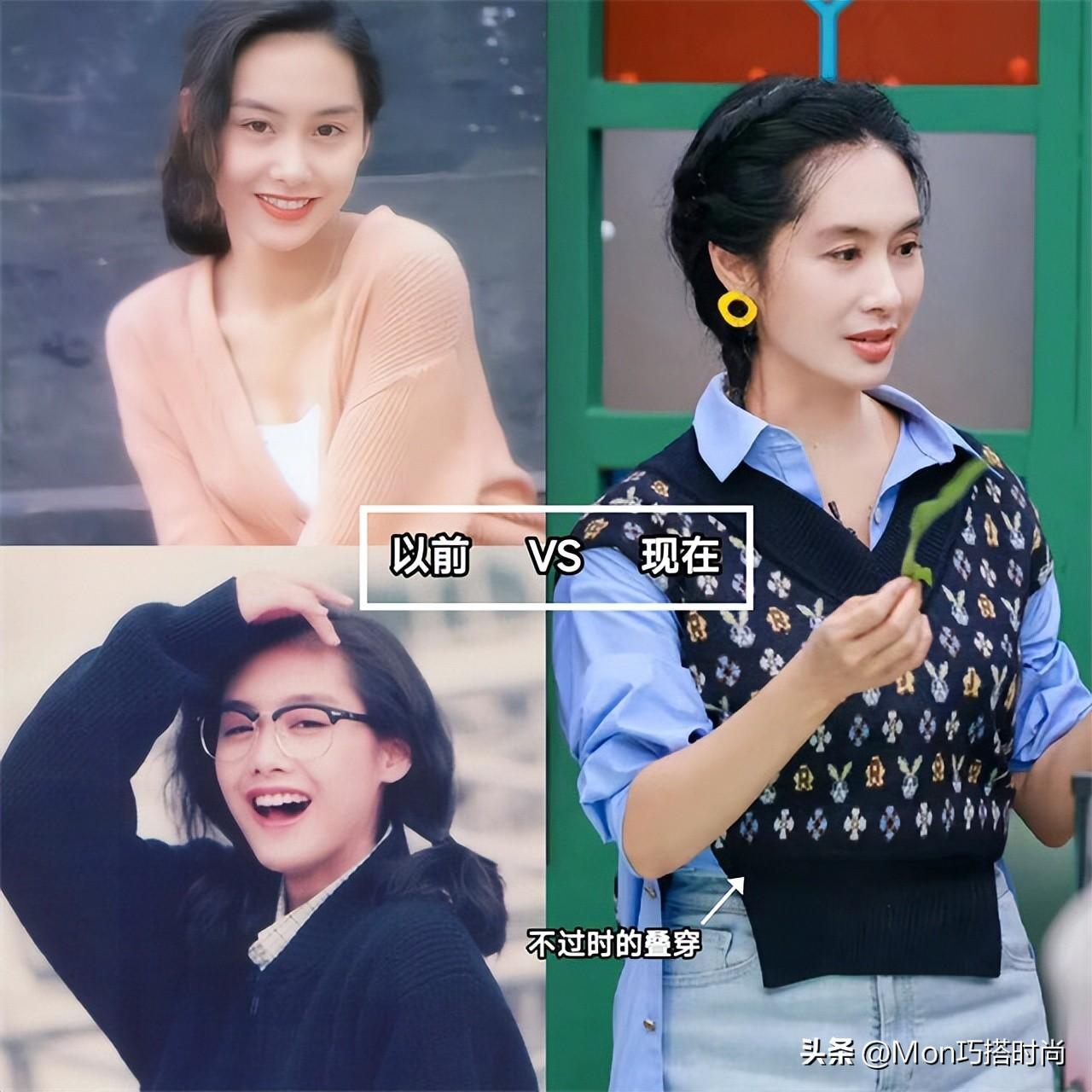 7、80年代时就已经流行起了毛衣与衬衫的叠穿,满满的少女感。就算当初的美人现在已人到中年,衬衫和针织衫的叠穿不也照样好看?