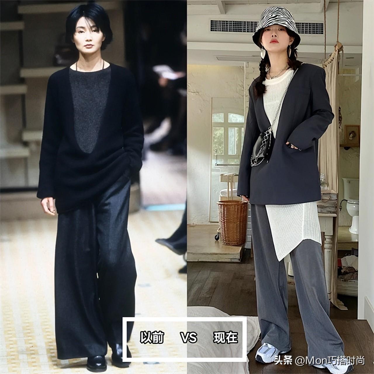 来猜猜看左边黑色毛衣配阔腿裤的率性搭配是哪一年的时尚?如果不说,谁知道这竟然是七八十年代的搭配?