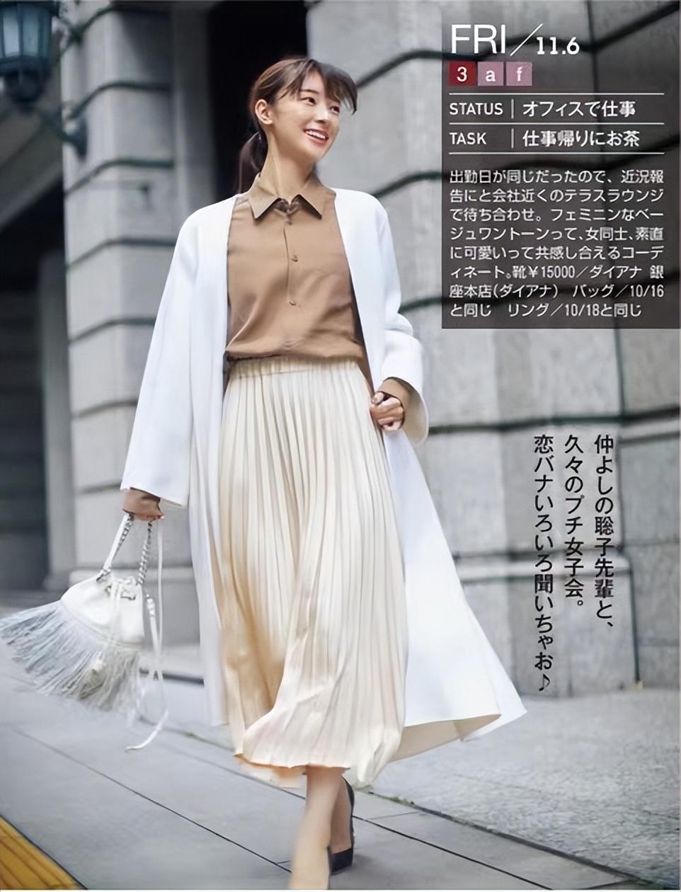 1.米色百褶裙:颜色淡雅温柔,裙型飘散,细密百褶加身,优雅不失利落