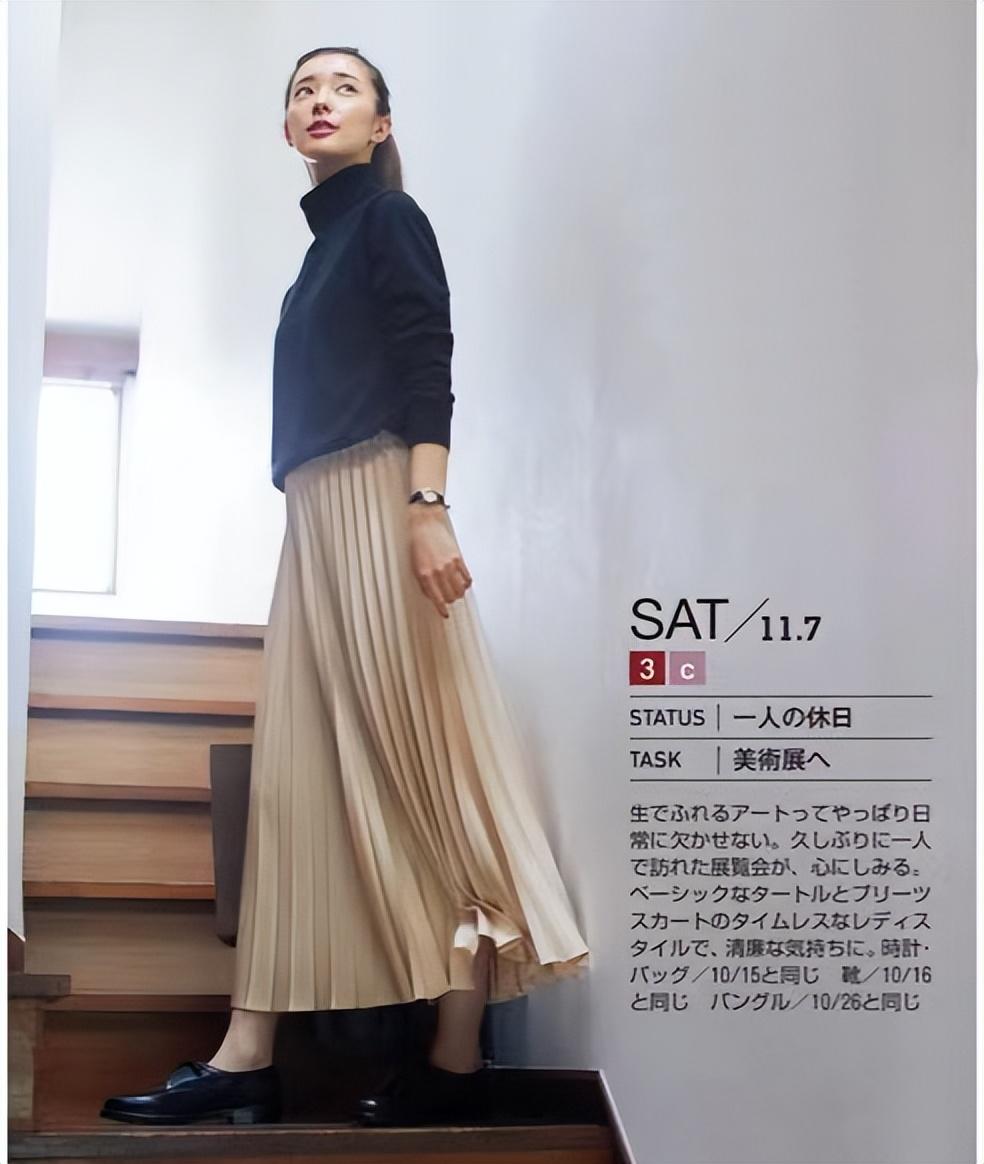 换成黑色高领针织衫,如同披上“战衣”,即将开启新一天的生存厮杀。内可温柔、外可凛然,这条米色百褶裙都能应对自如。