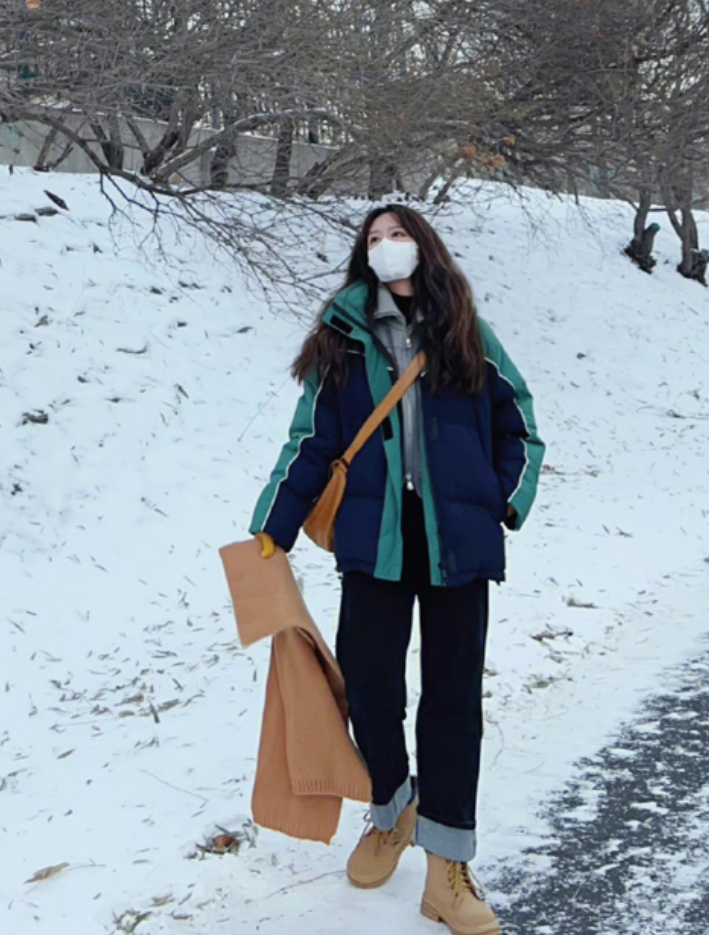 到了寒冬,运动风更是焕发出强大的生命力。各类休闲单品和正式单品搭配在一起,碰撞出激烈的火花。这件蓝绿撞色的羽绒服,有一点复古校服的feel,搭配一条卷边牛仔裤和大黄靴,美式复古的颜色更加多样,但又不会过于张扬,有一种独特的魅力与格调。