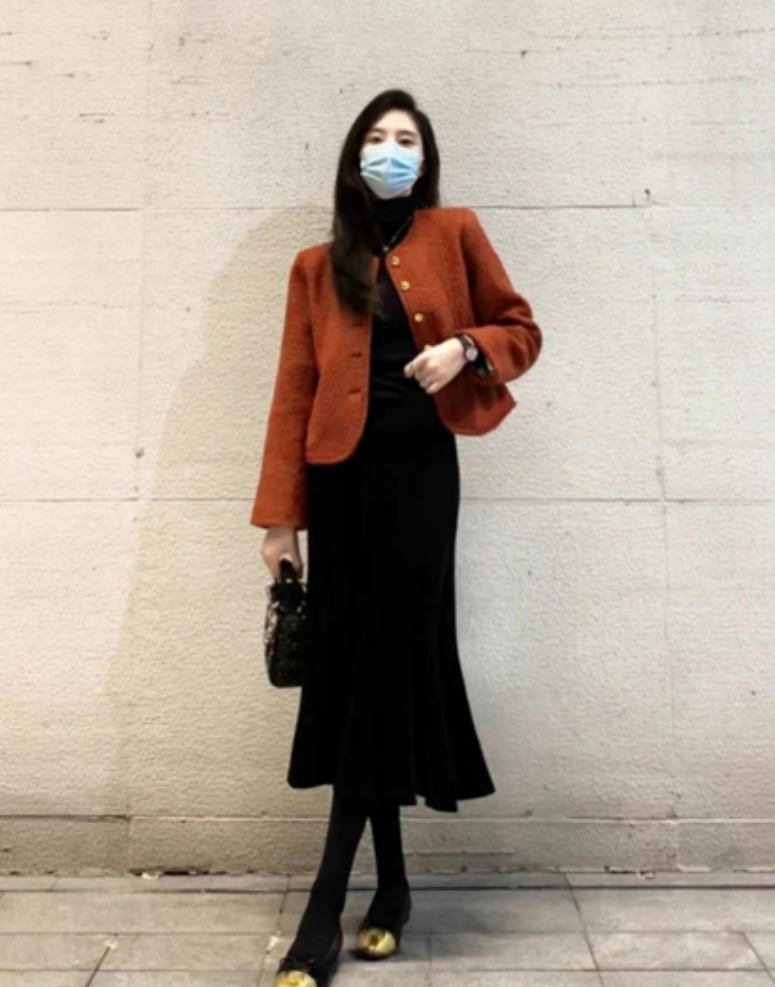 到了冬天,我们更要穿一些亮色的单品。这套穿搭很有成熟的女人味,内搭是一件黑色鱼尾连衣裙,勾勒出婀娜的身姿。酒红色的小香风外套,瞬间让原本优雅的穿搭增添几分复古别致,这腔调有一种让人说不出的韵味,别具浪漫文艺气息。