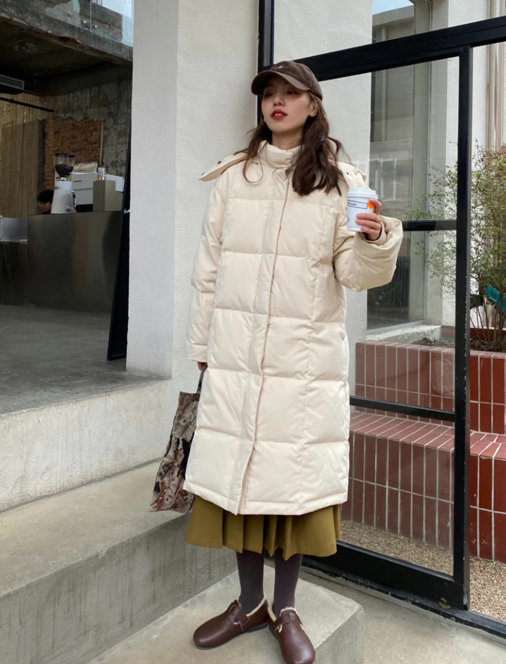 再冷一点的时候,还是要把长款羽绒服拿出来穿。选择长款羽绒服只有一个要点,就是尽量选择H版型的,什么身材的姐妹都可以驾驭。
